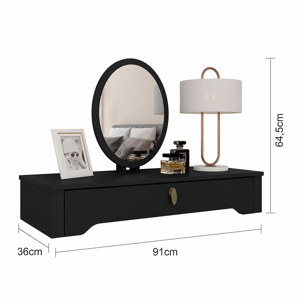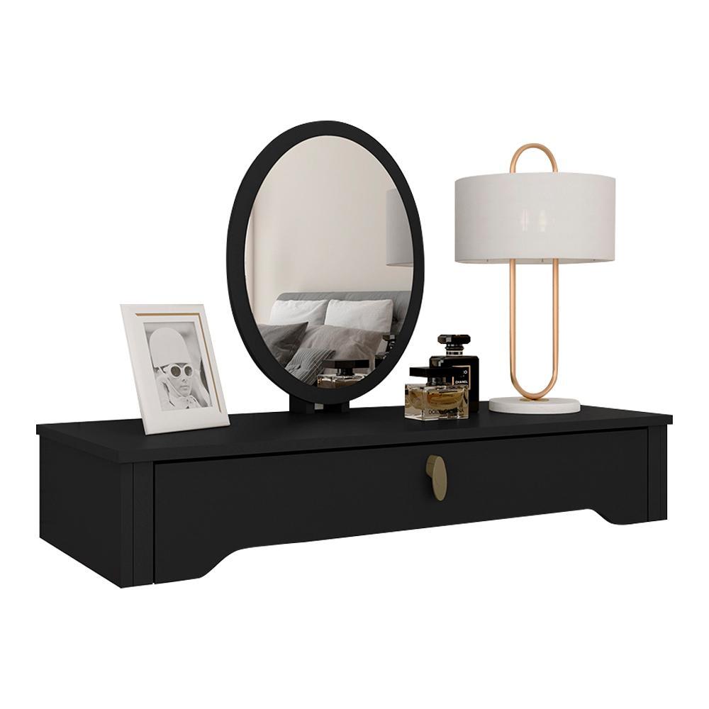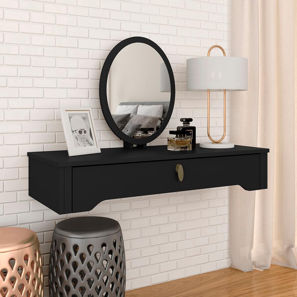Penteadeira Suspensa Com Espelho Paola Preto Fosco - Móveis Arapongas