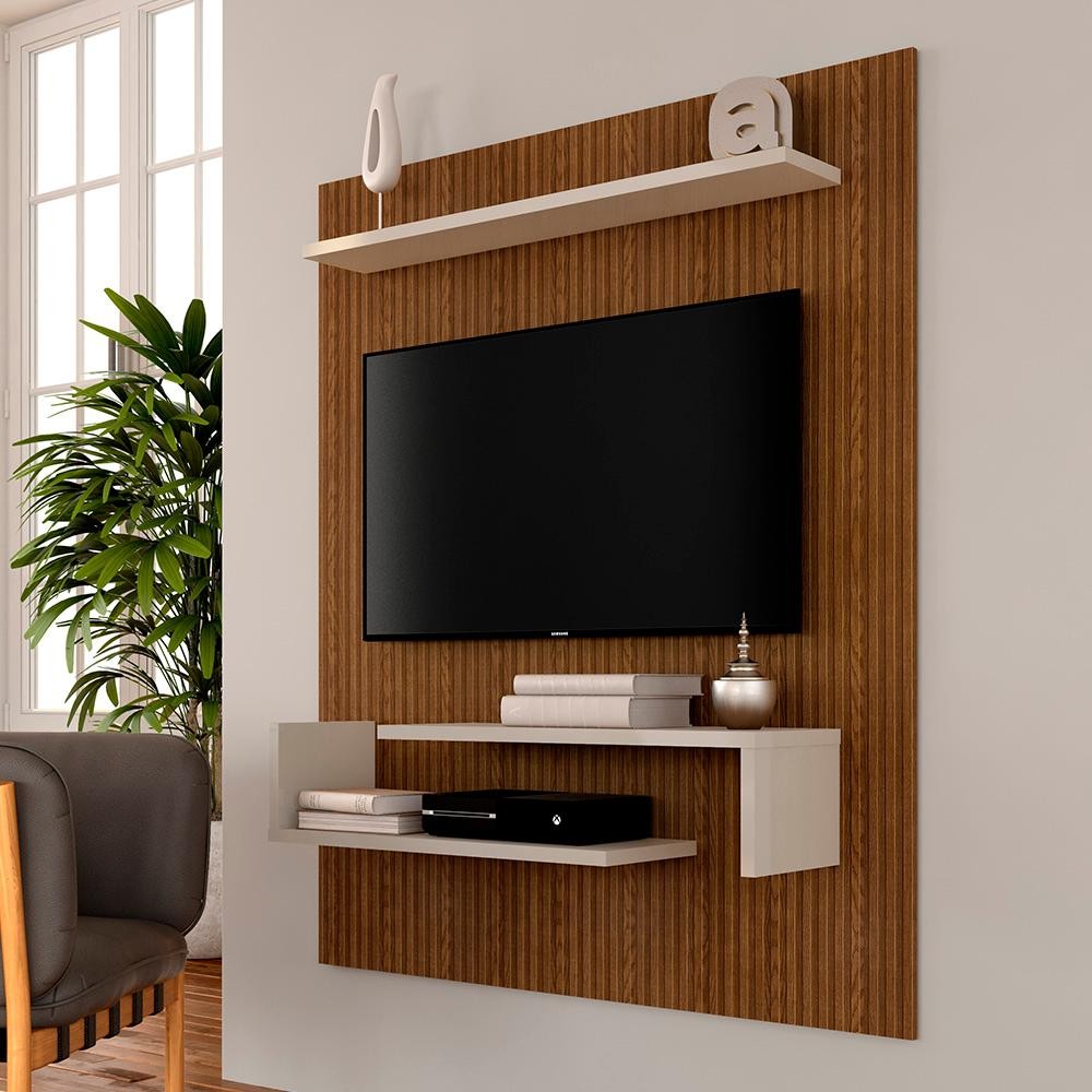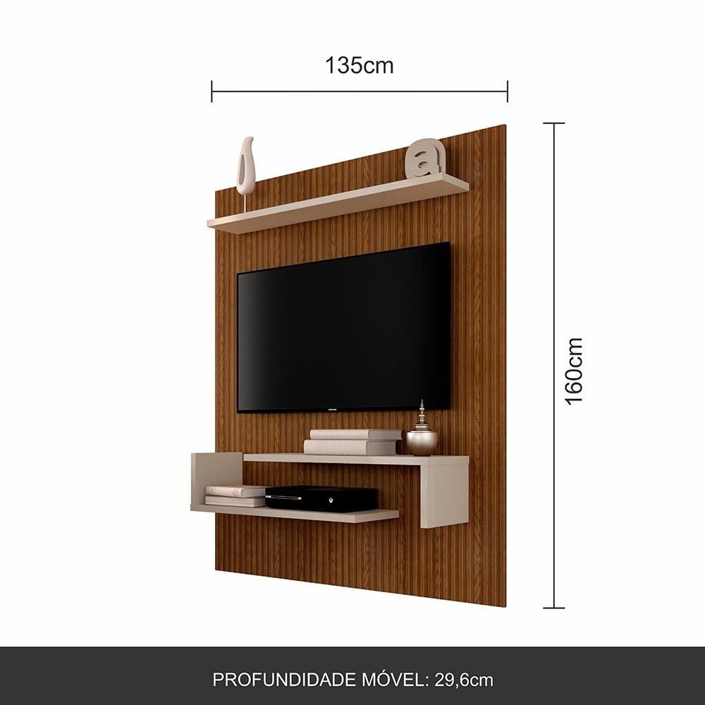 Painel Suspenso Sonora Tv 55" Off Whi/freijó Ripado - Móveis Arapongas
