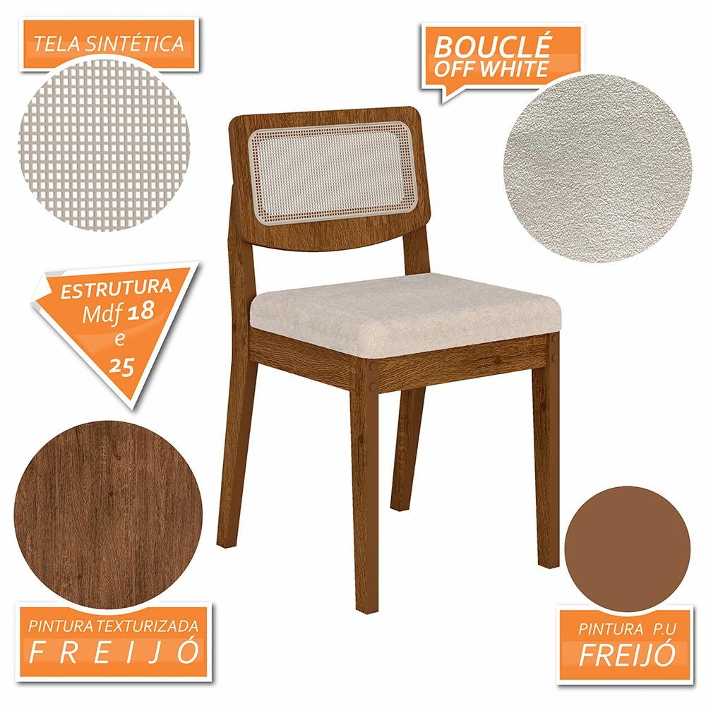 Kit 6 Cadeiras Sextavada Bari Freijó/bouclé Off White - M. Arapongas