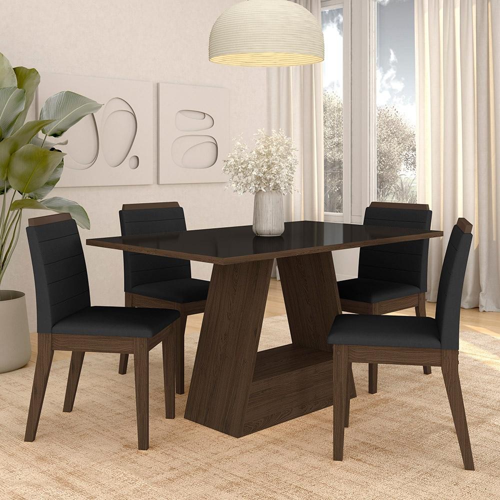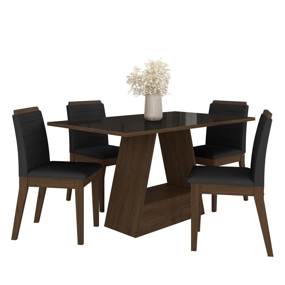 Mesa Com 4 Cadeiras Nápoles 1,36 Imbuia/preto/preto - Móveis Arapongas