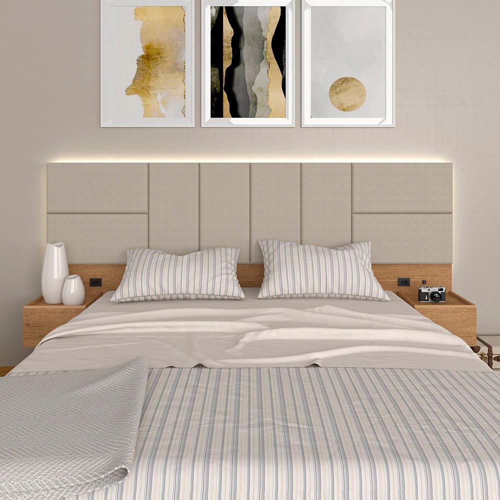 Cabeceira Suspensa Cama Queen Com Led Malibu Carv/bege - M. Arapongas