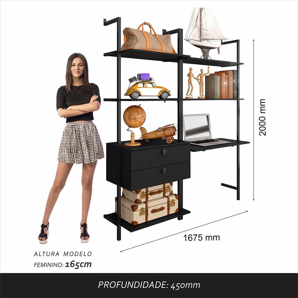 Closet Estilo Industrial Siena 2 Gaveta Preto Fosco - Móveis Arapongas