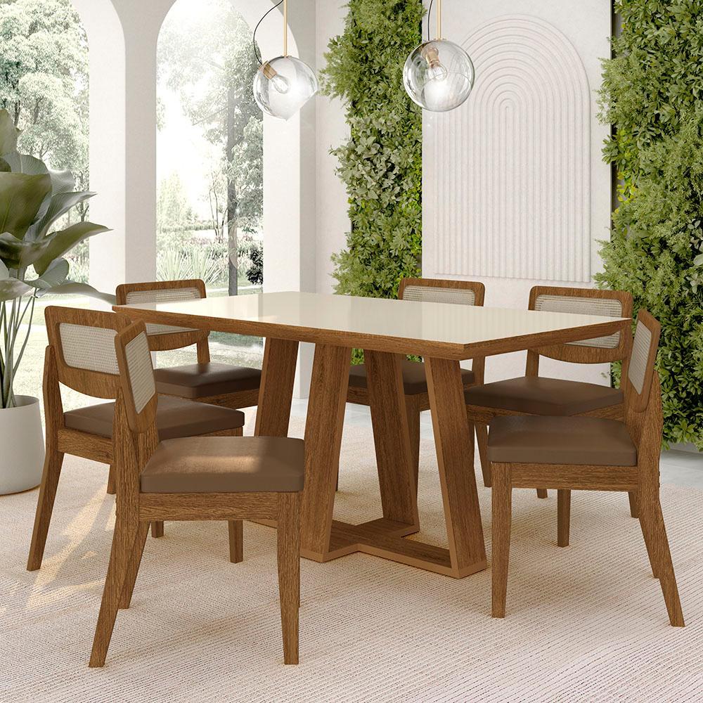 Mesa Sion 1,60 Com 6 Cadeiras Sextavada Freijó/off/cori Caramelo - M.a