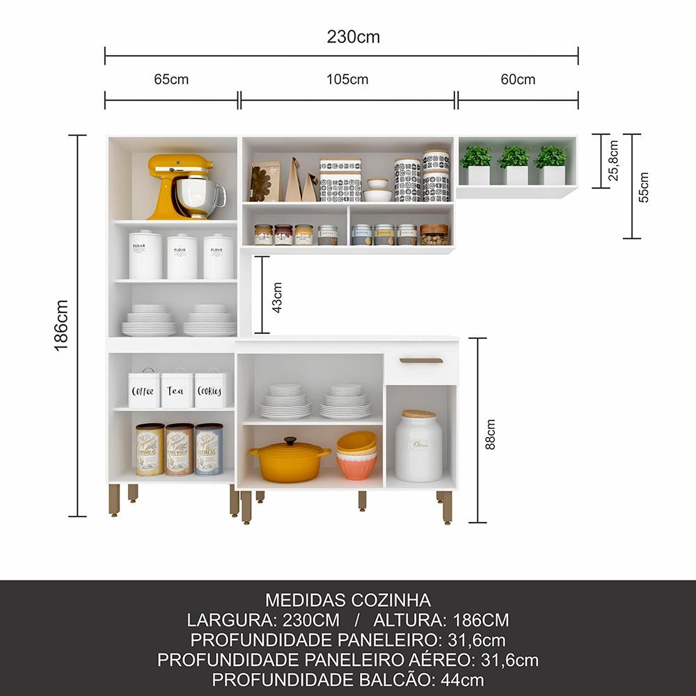 Armário De Cozinha Modulada Tieli 4 Peças Branco - Móveis Arapongas