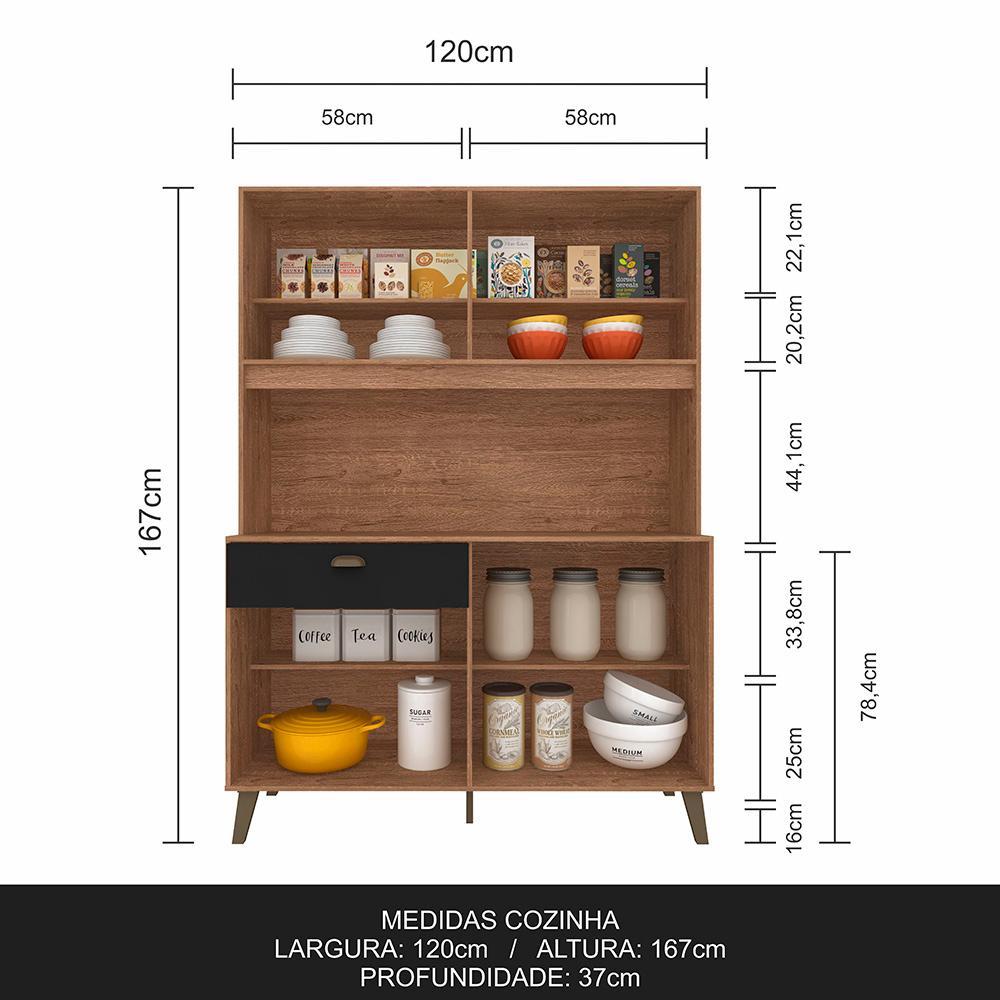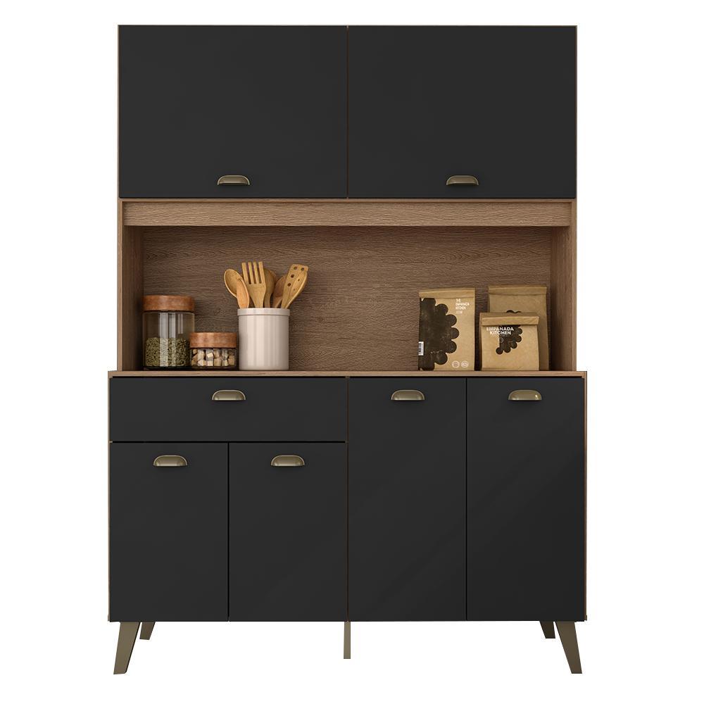 Armário Kit De Cozinha Emily Retro 6 Portas Carvalho/preto Fosco - Ma