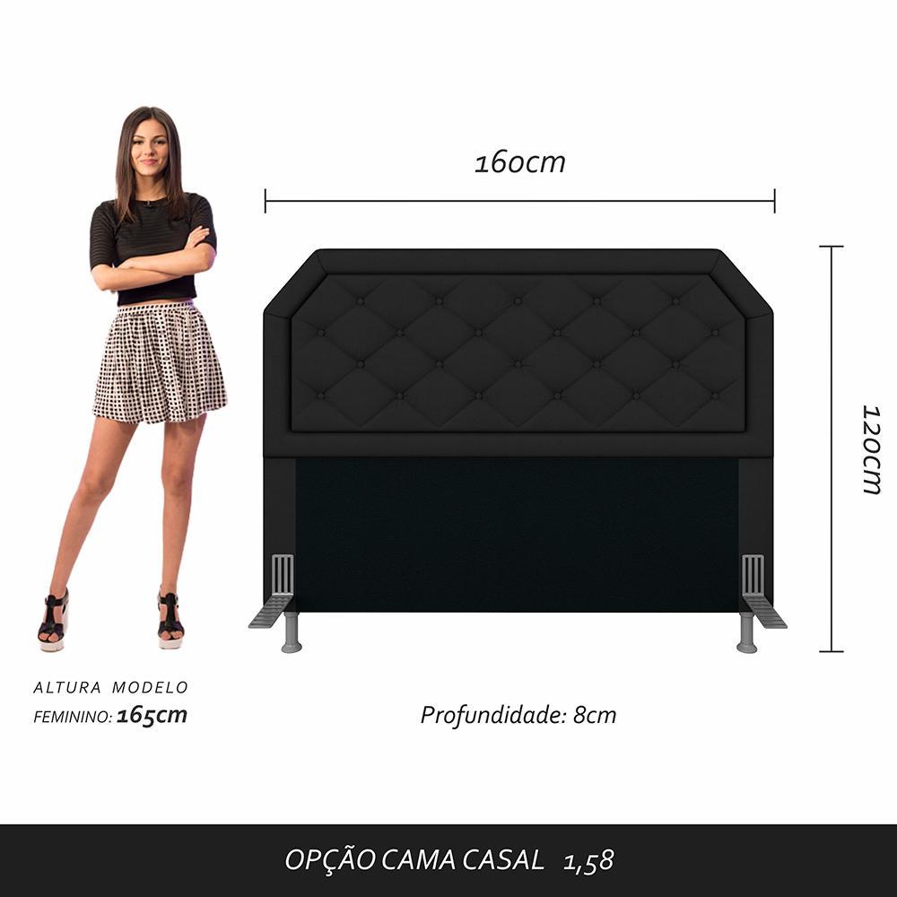Cabeceira Estofada Cama Box Queen Florença Suede Preto - Móveis Arapongas