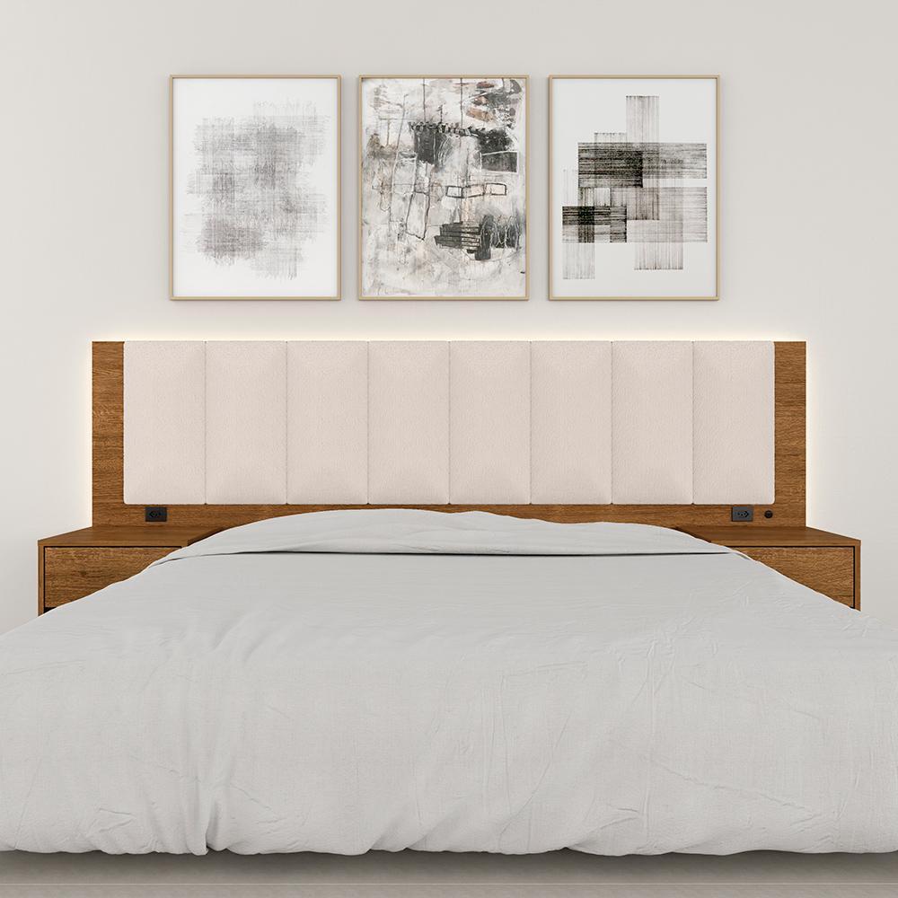 Cabeceira Estofada Cama Casal Deinze Com Led Freijó/bouclé Off - M.a