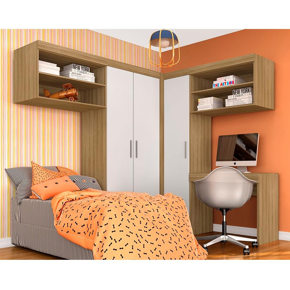 Guarda Roupa Modulado Com Escrivaninha Luzia Bor/br - Móveis Arapongas