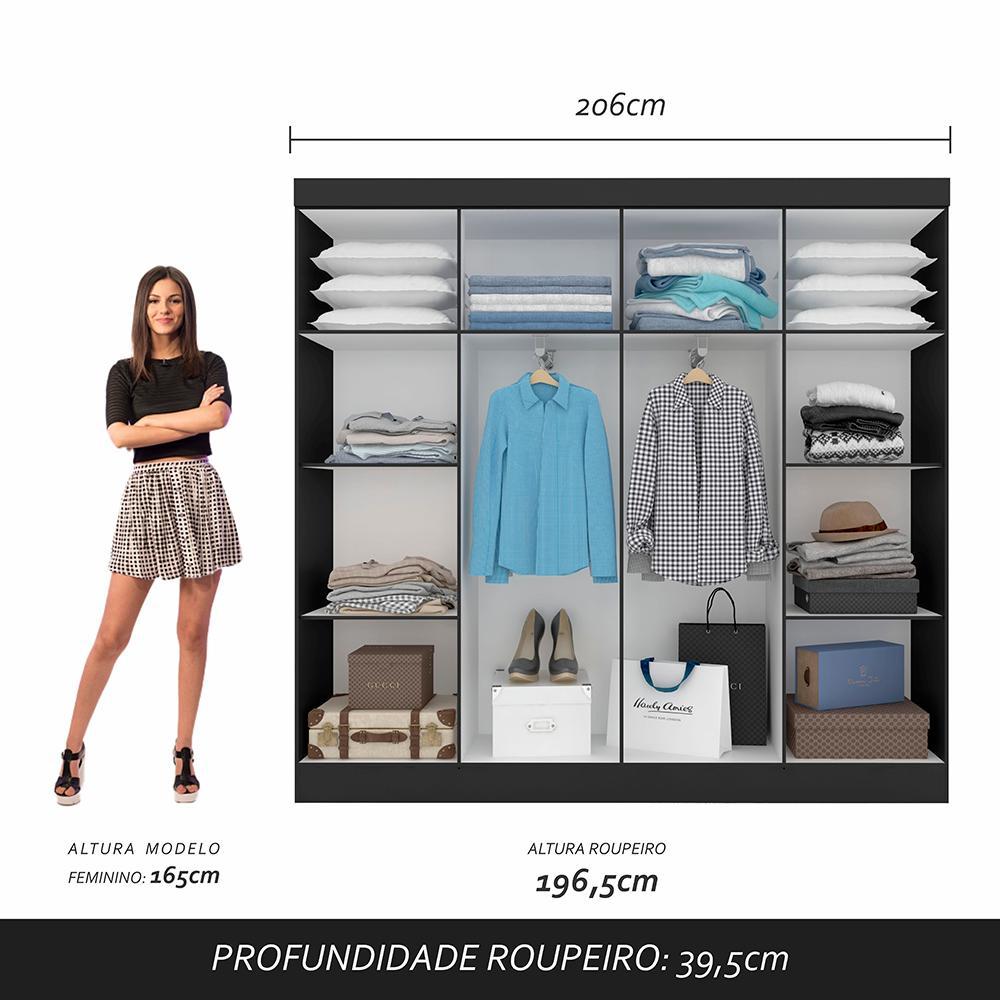 Guarda Roupa Casal 8 Portas Natasha Preto - Móveis Arapongas