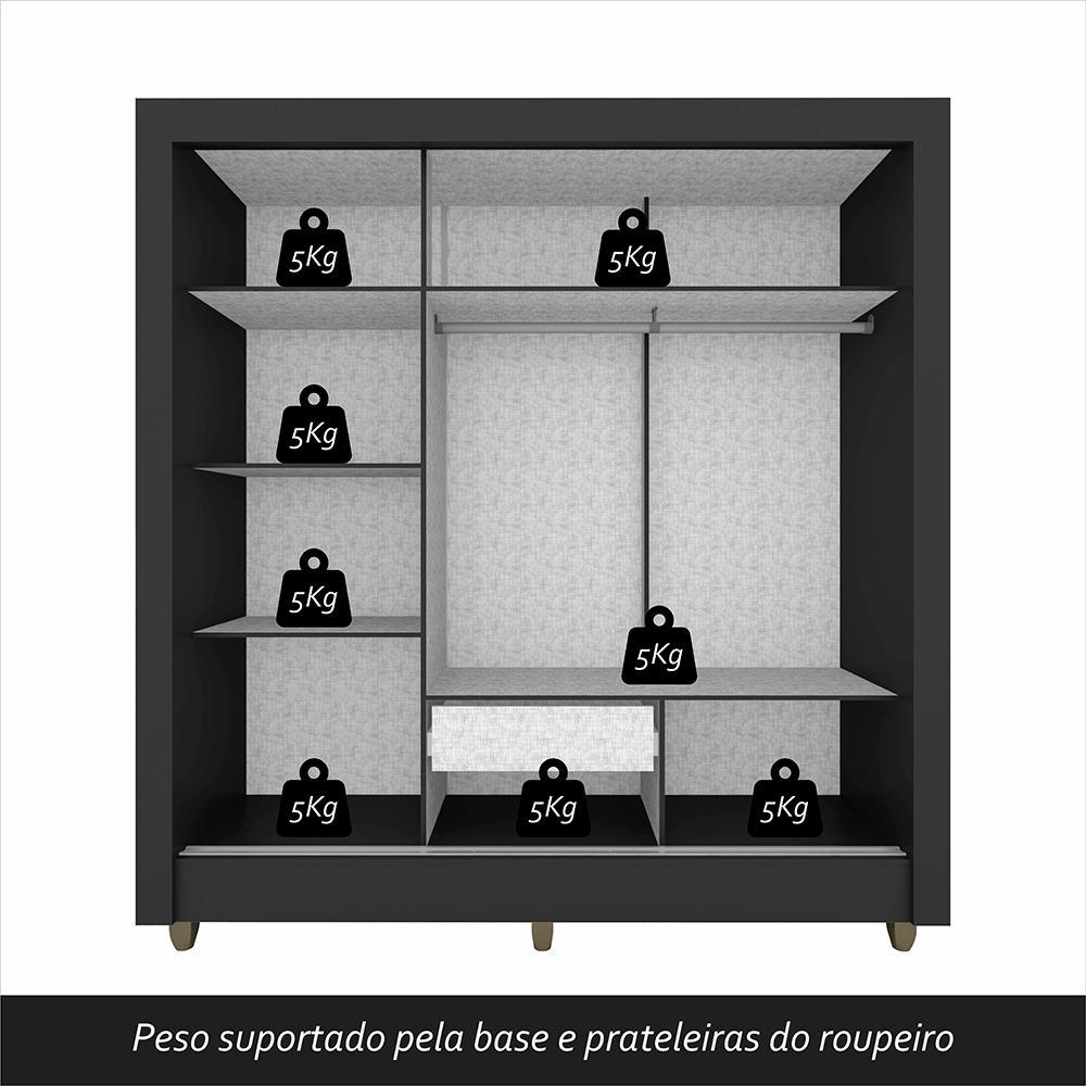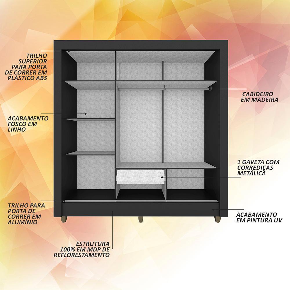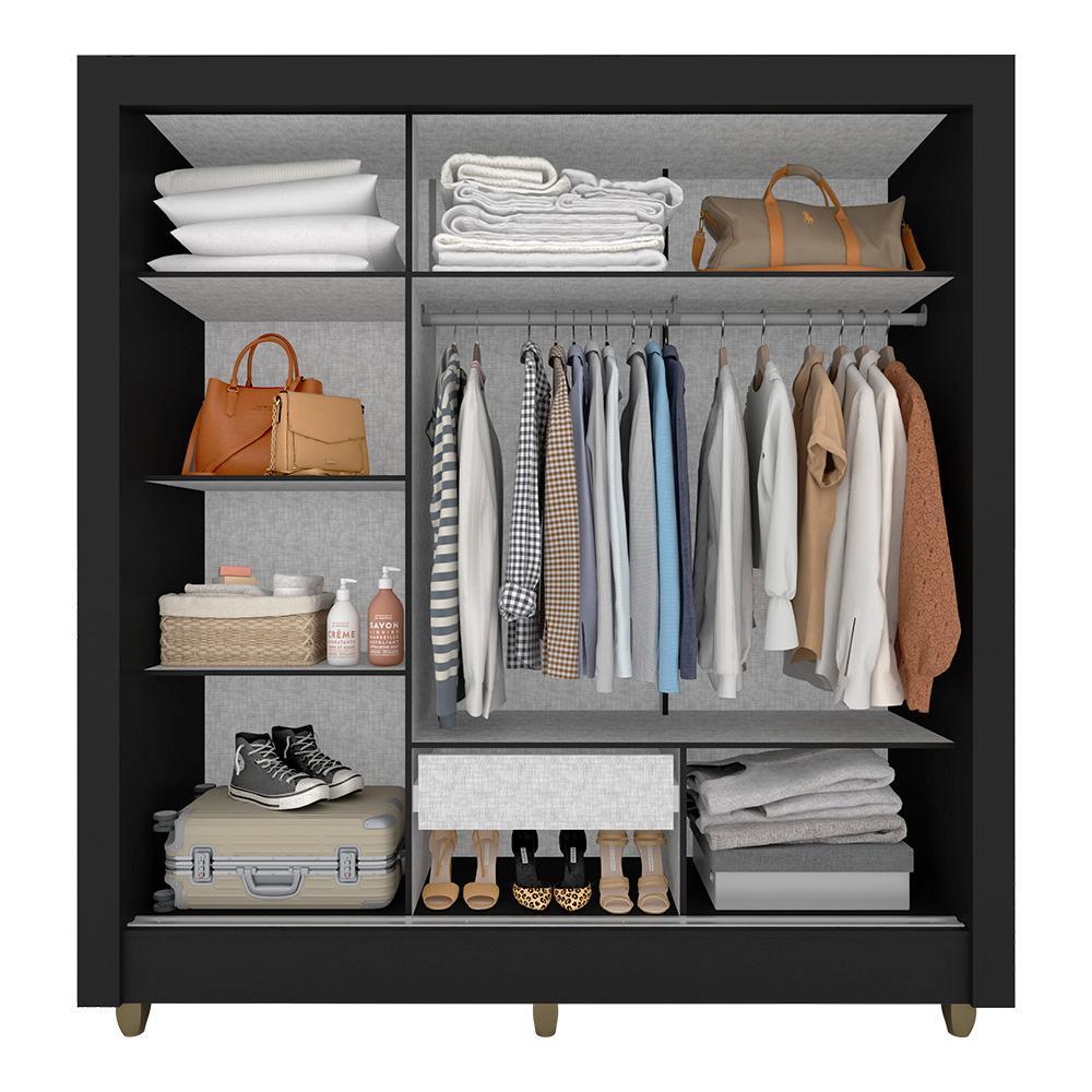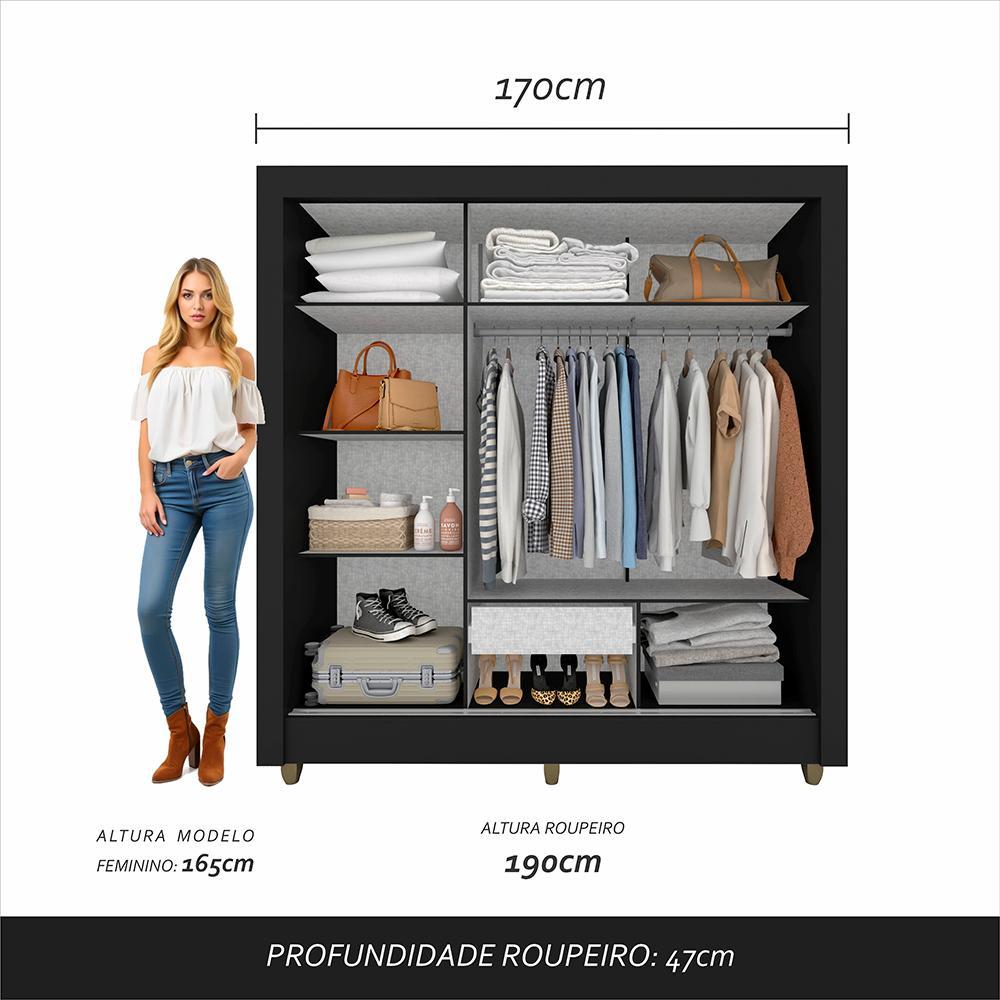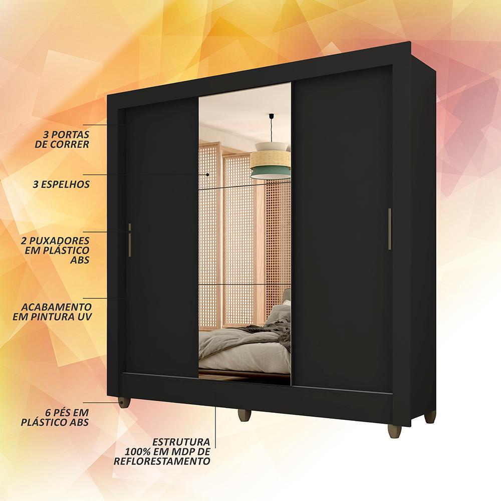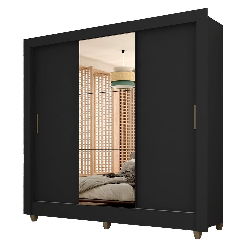 Guarda Roupa Casal C/espelho 3 Pts 1 Gav Alice Preto - M. Arapongas