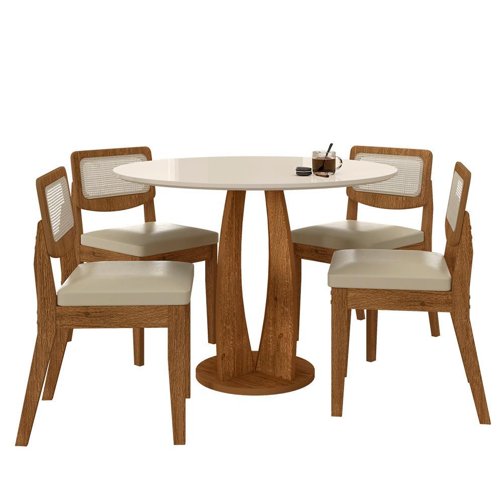 Mesa Redonda Camogli 4 Cadeiras Sextavadas Freijó/off/corino Beg - M.a