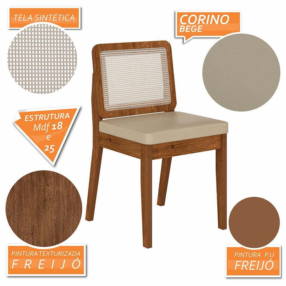 Mesa Redonda C/vidro 4 Cadeiras Sextavada Cali Fre/off/cor. Bege - Ma