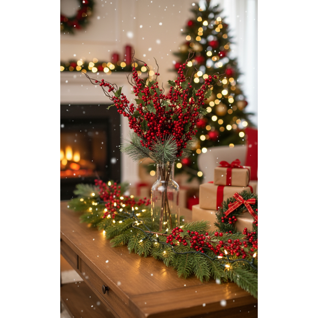 Arranjo de Natal Enfeite de Mesa Decorativo | Pinhas Frutas Vermelhas | Decoração Natalina Completa