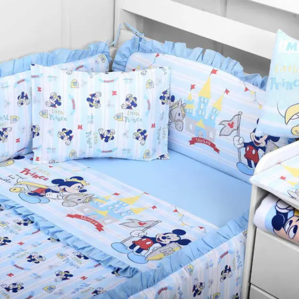Jogo De Lençol Berço Kit com 3 Peças Minnie Mickey Disney 100% Algodao