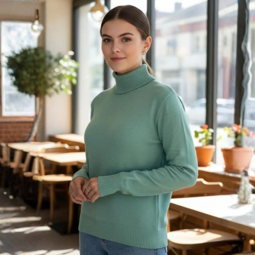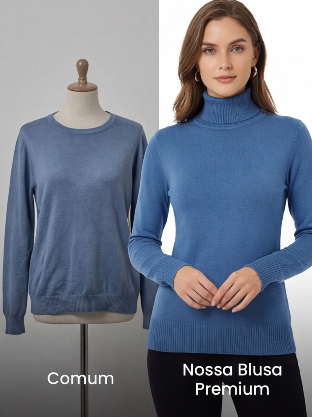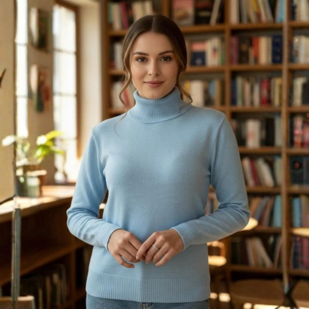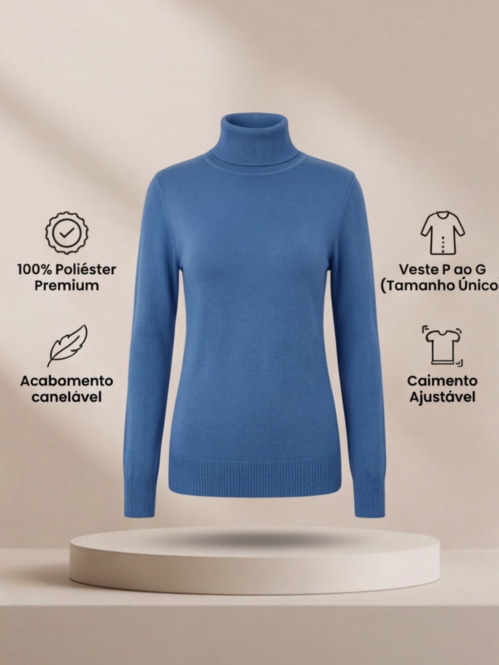 Blusa Cacharrel Feminina Manga Longa Gola Alta Tricot Premium Básica