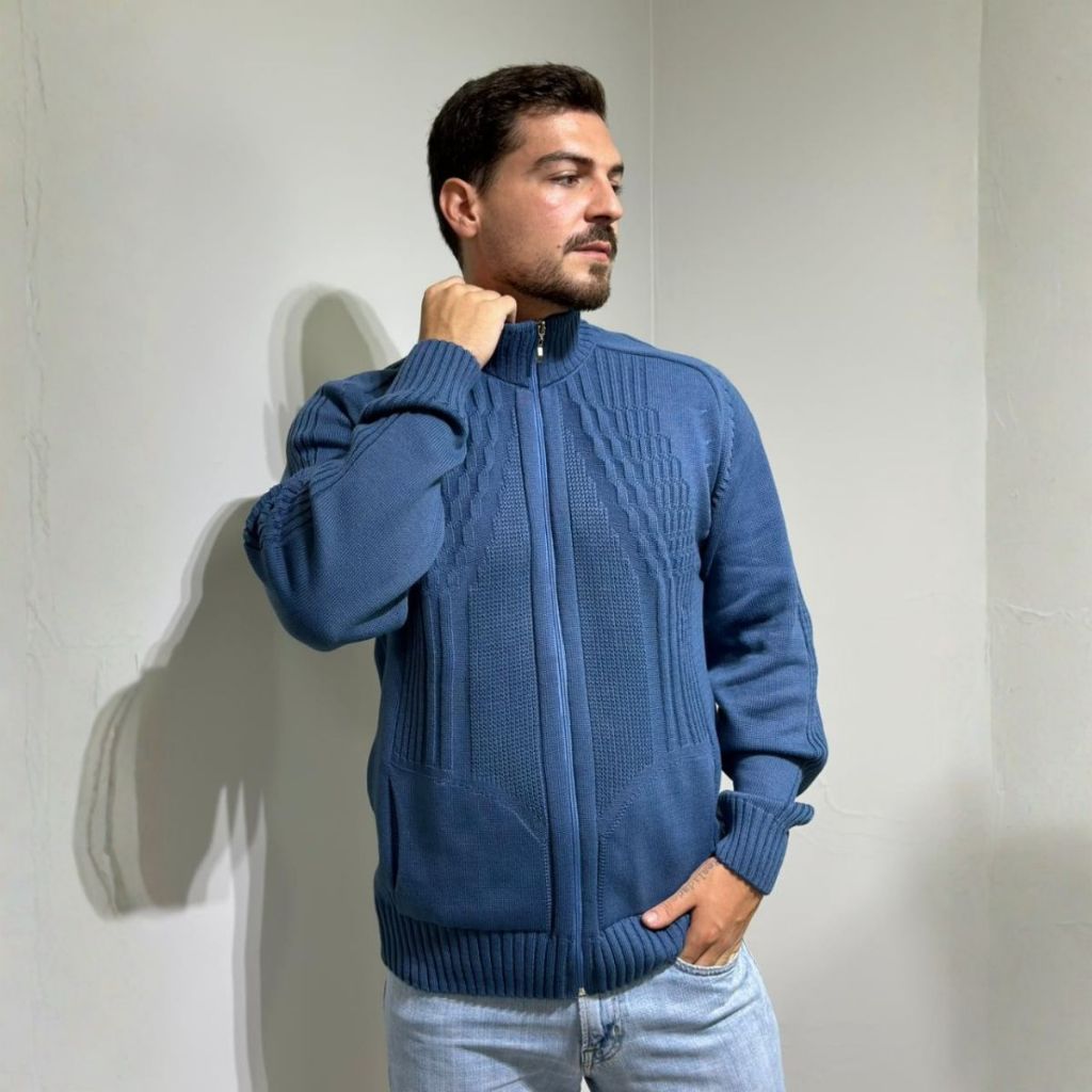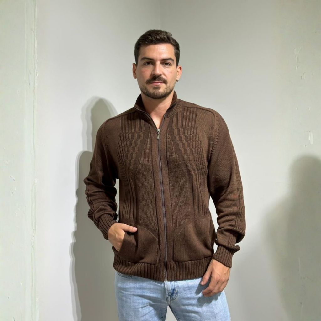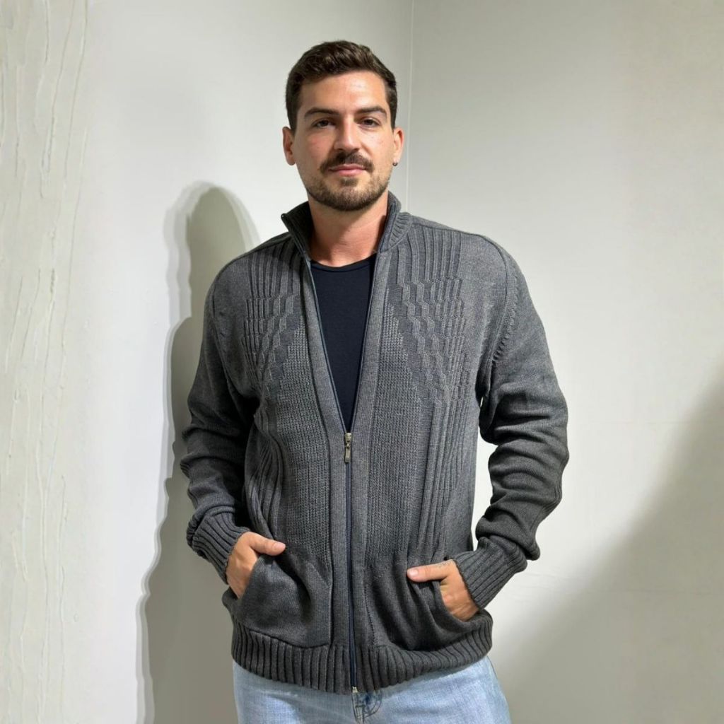 Casaco Masculino Luxoso Inverno Elegante Tendência Premium Tricot Blusa de Frio