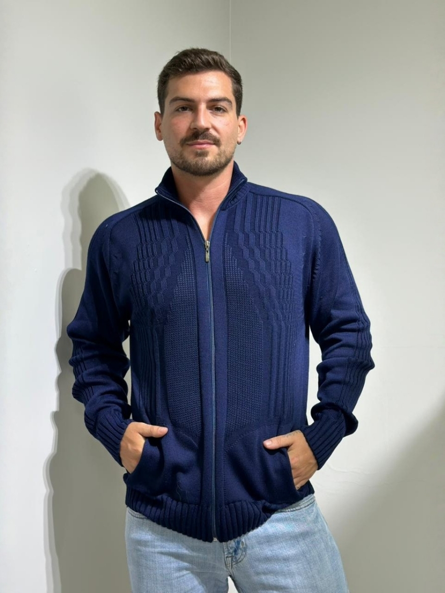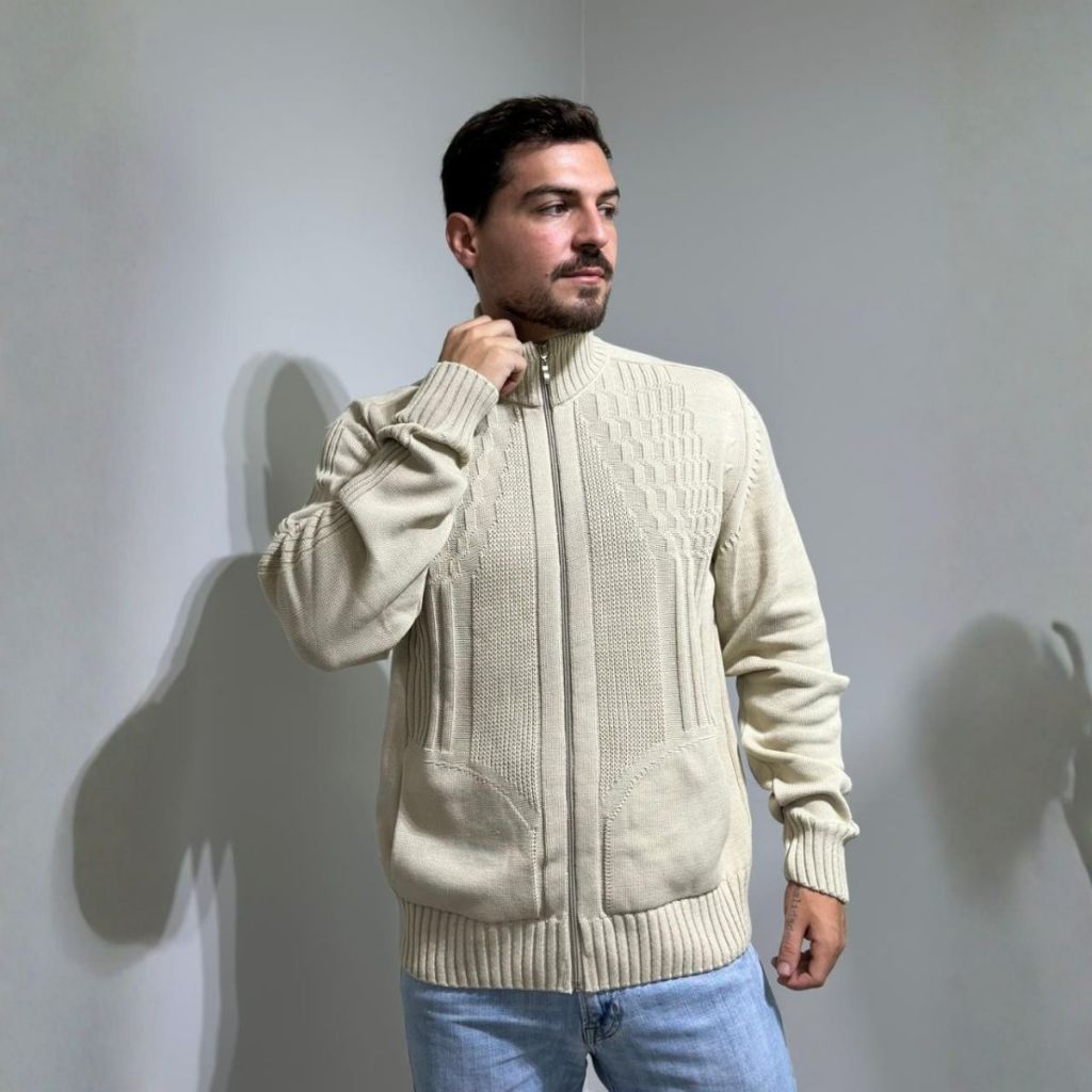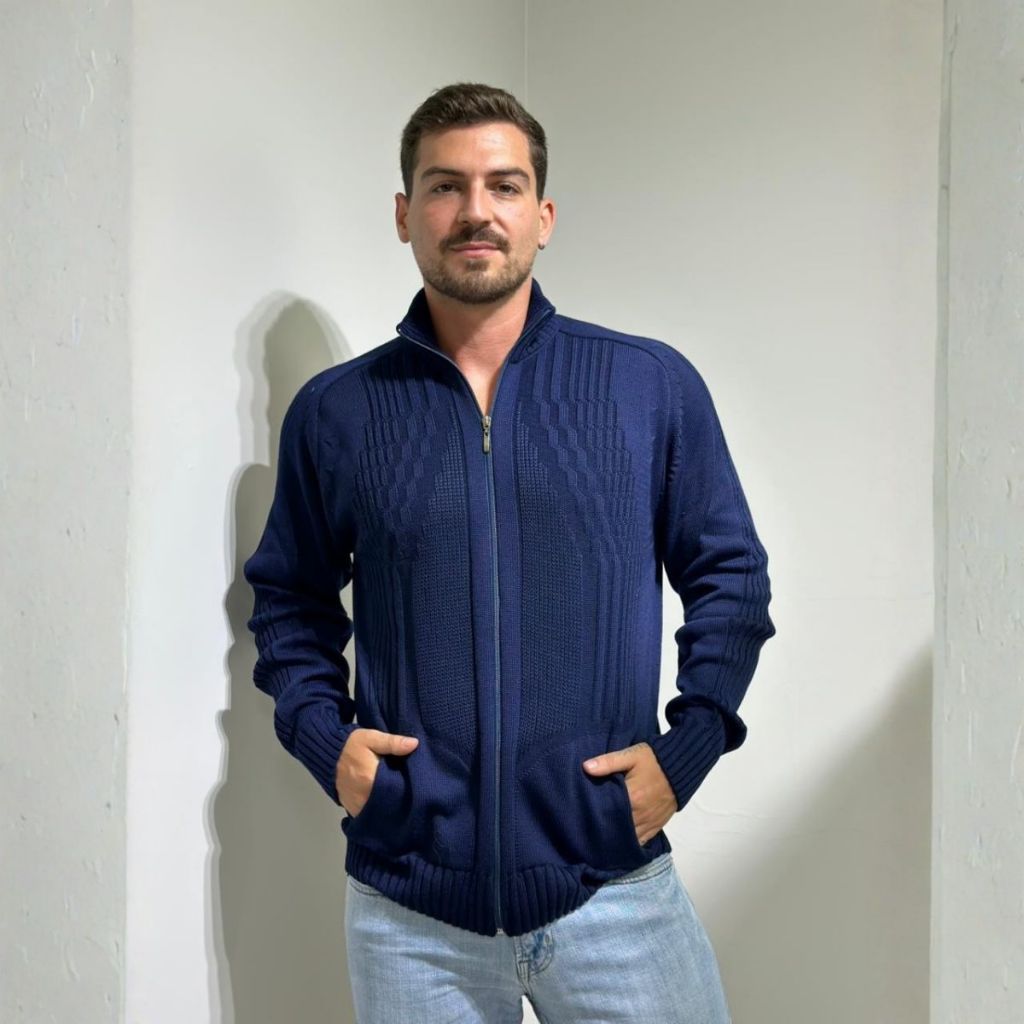 Casaco Masculino Luxoso Inverno Elegante Tendência Premium Tricot Blusa de Frio