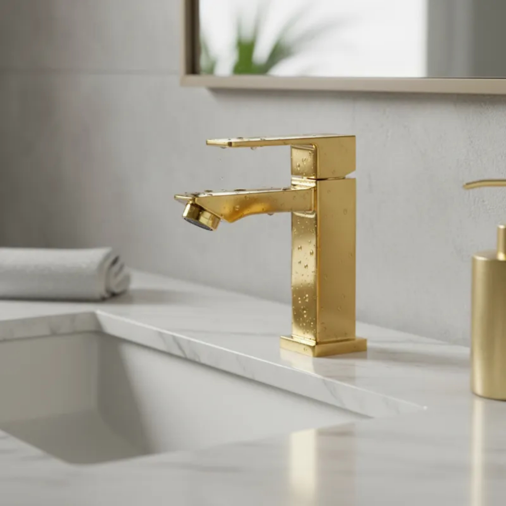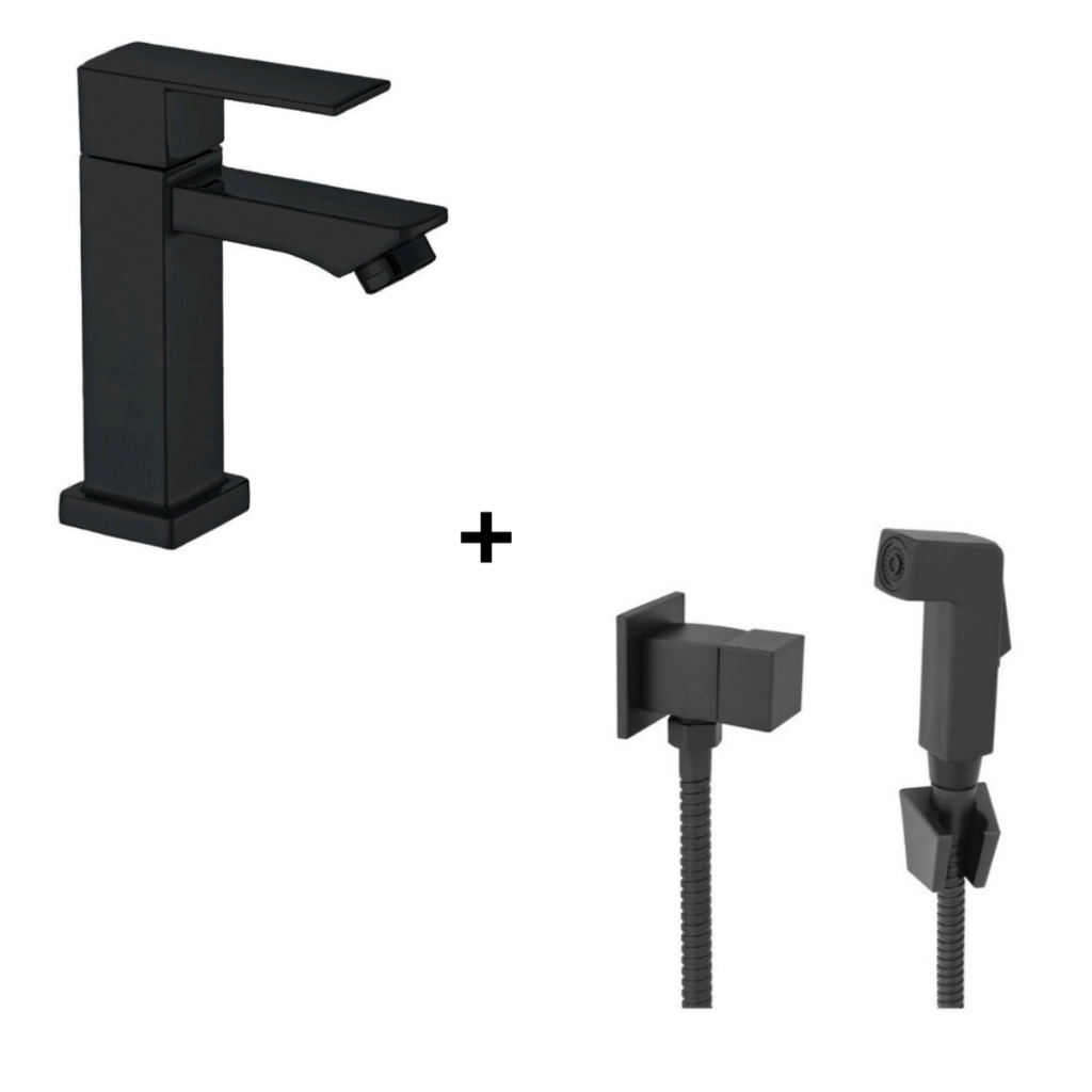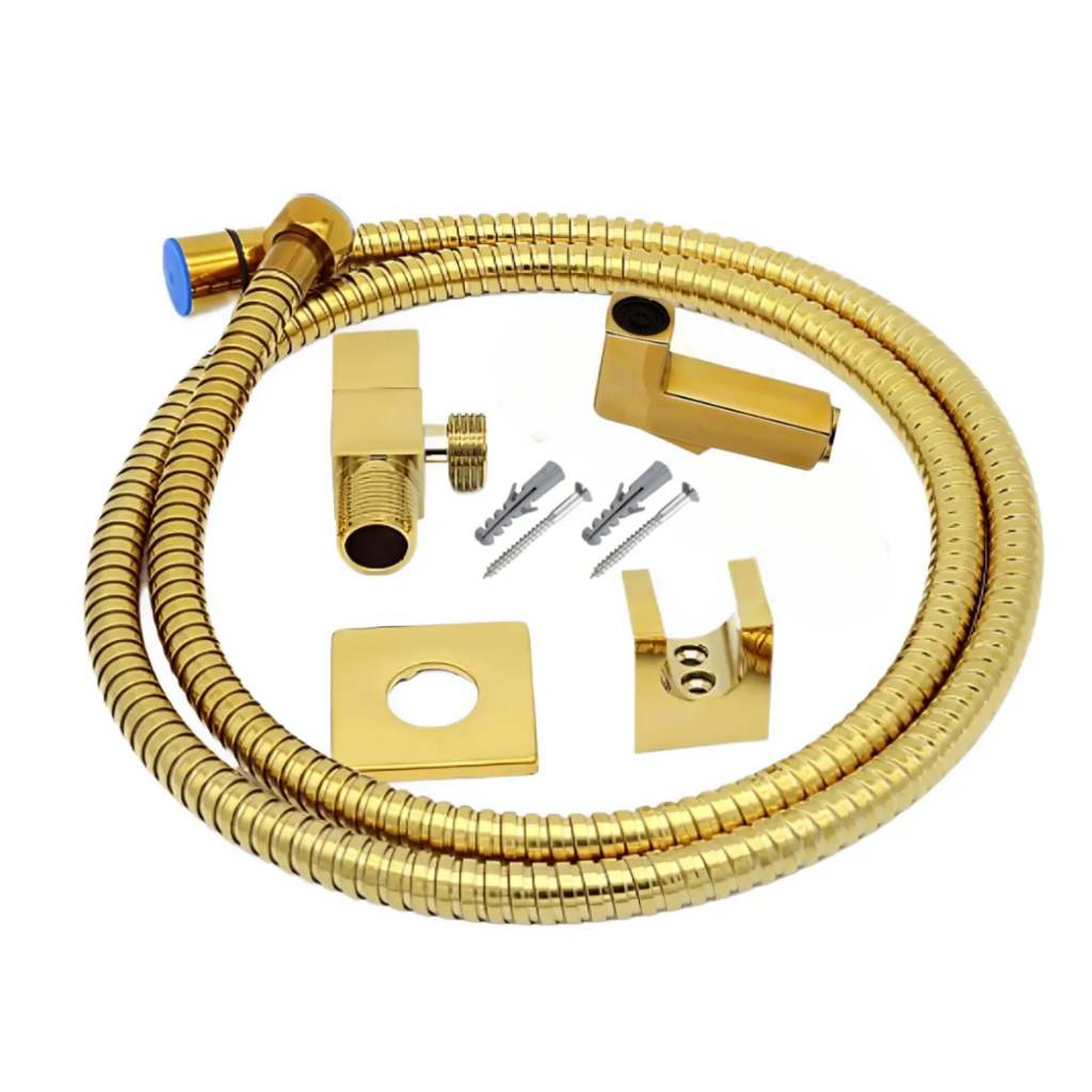 Kit Banheiro Dourado Torneira + Ducha Higiênica Chuveirinho Luxo Quadrada Metal INoxidavel
