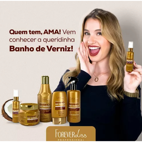 Óleo de Coco Banho de Verniz 60ml Sérum Anti-frizz Brilho Intenso - Proteção Térmica