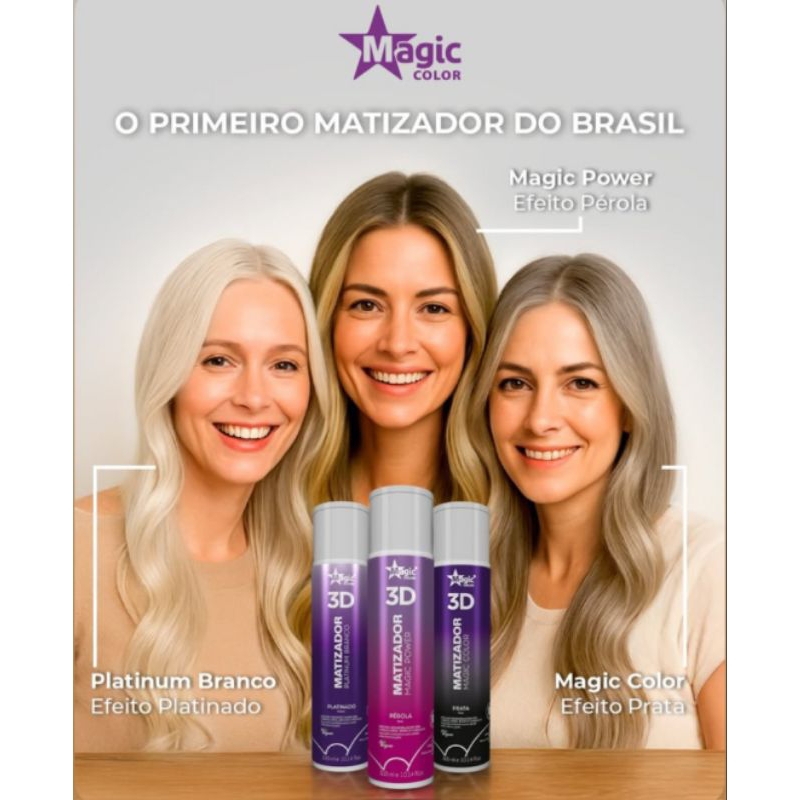 Magic Color 3D Matizador 300ml Máscara Desamareladora de Loiros e Grisalhos - Escolha seu Efeito