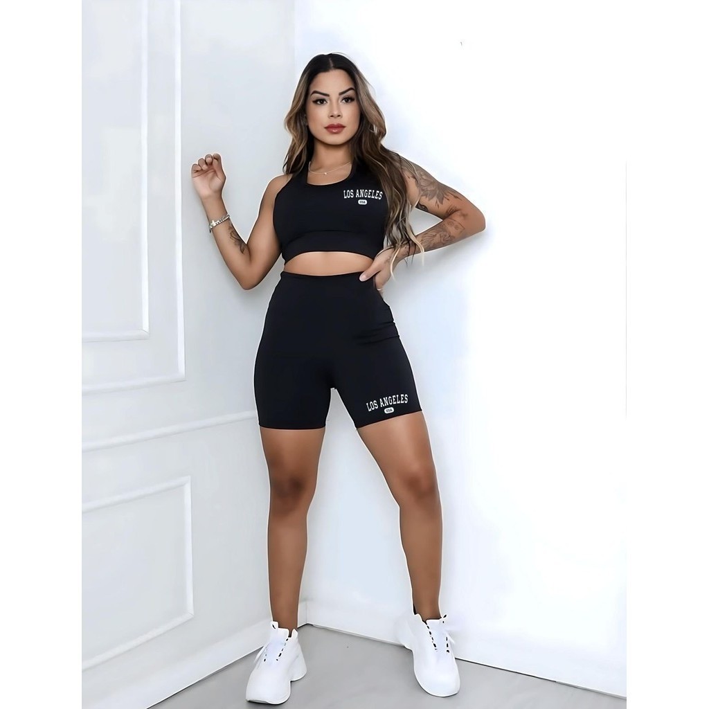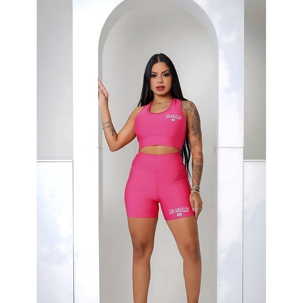 Conjunto Short e Top Feminino Academia Cintura Alta Suplex
