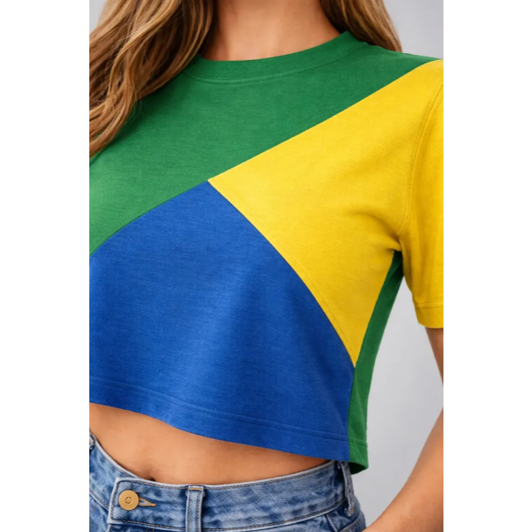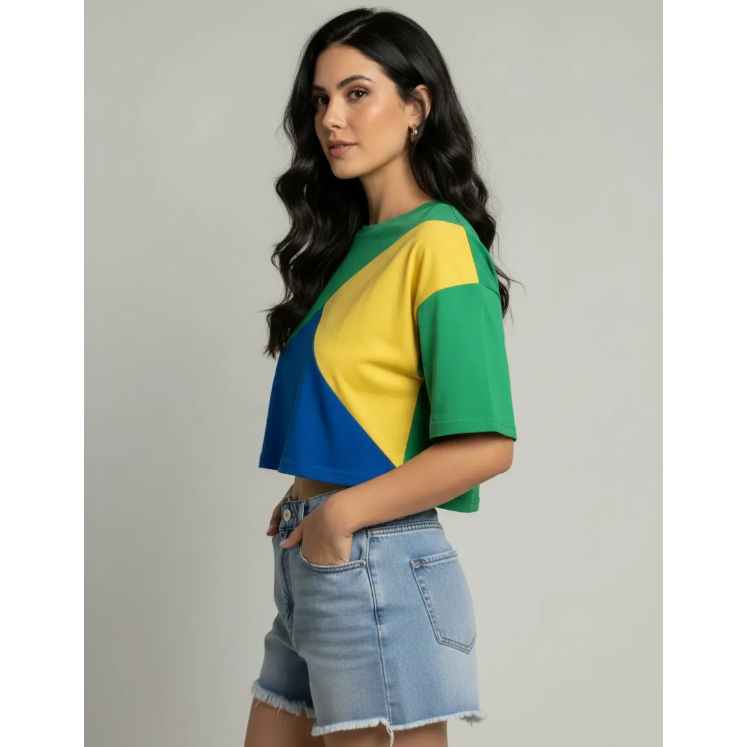 Camiseta Cropped Feminina Look Brasil Copa Do Mundo