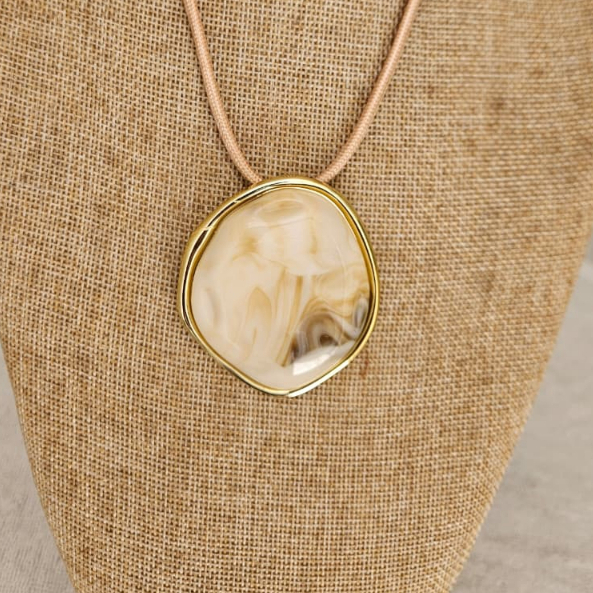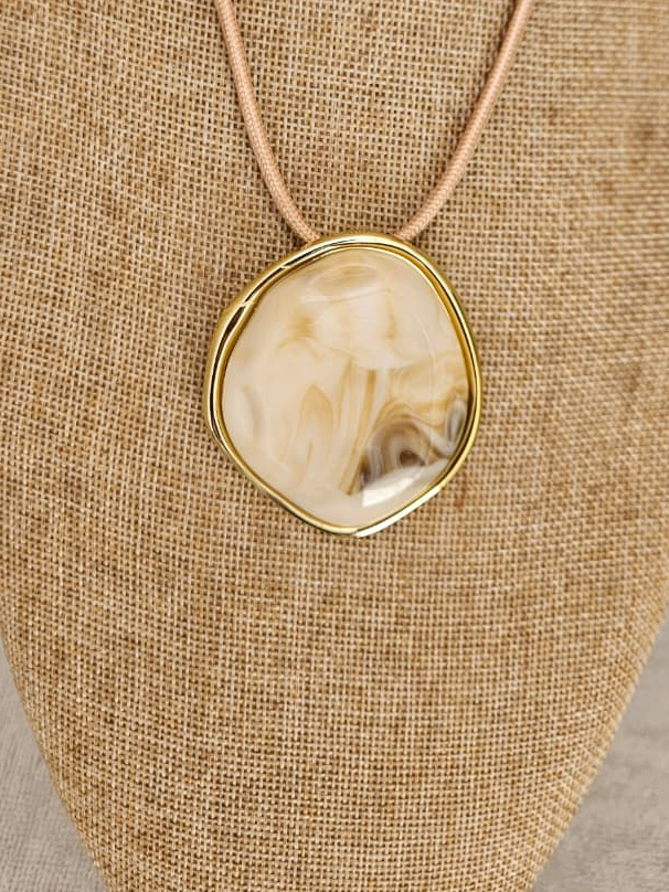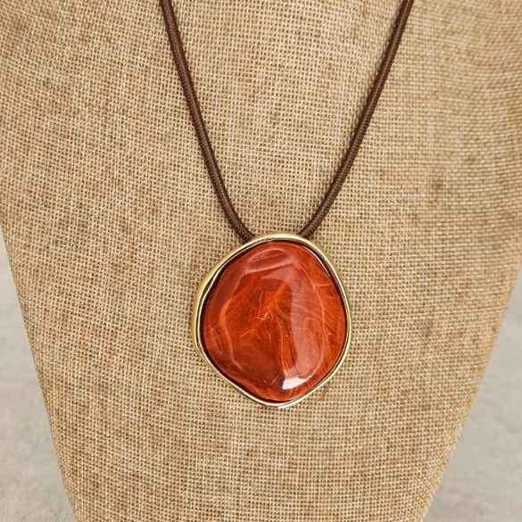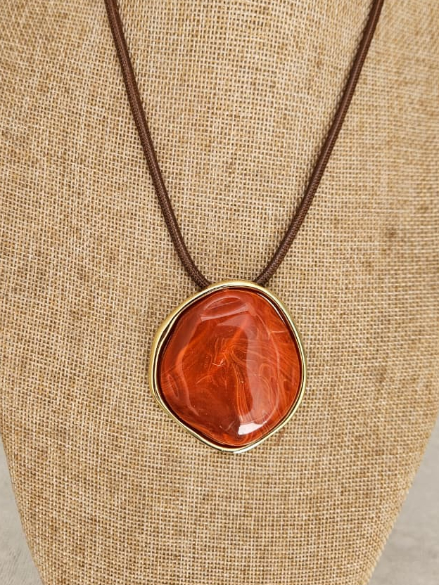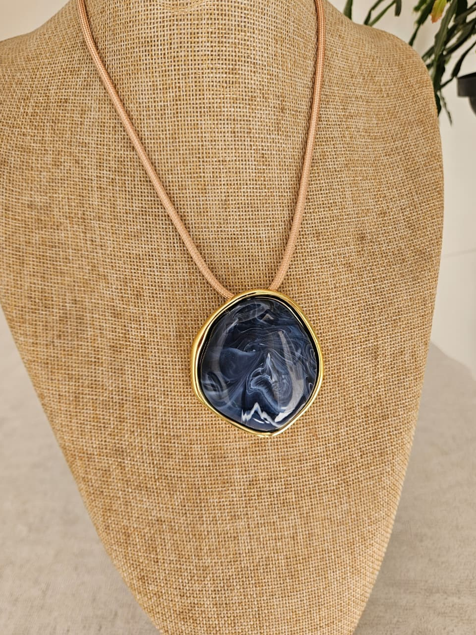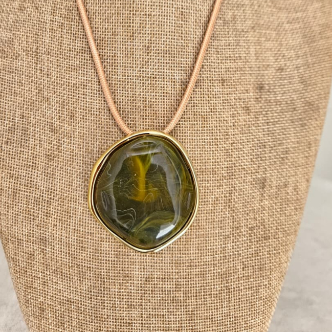 Colar Feminino com um Fio Encerado com Pingente Oval em Resina Azul Estilo Boho Artesanal