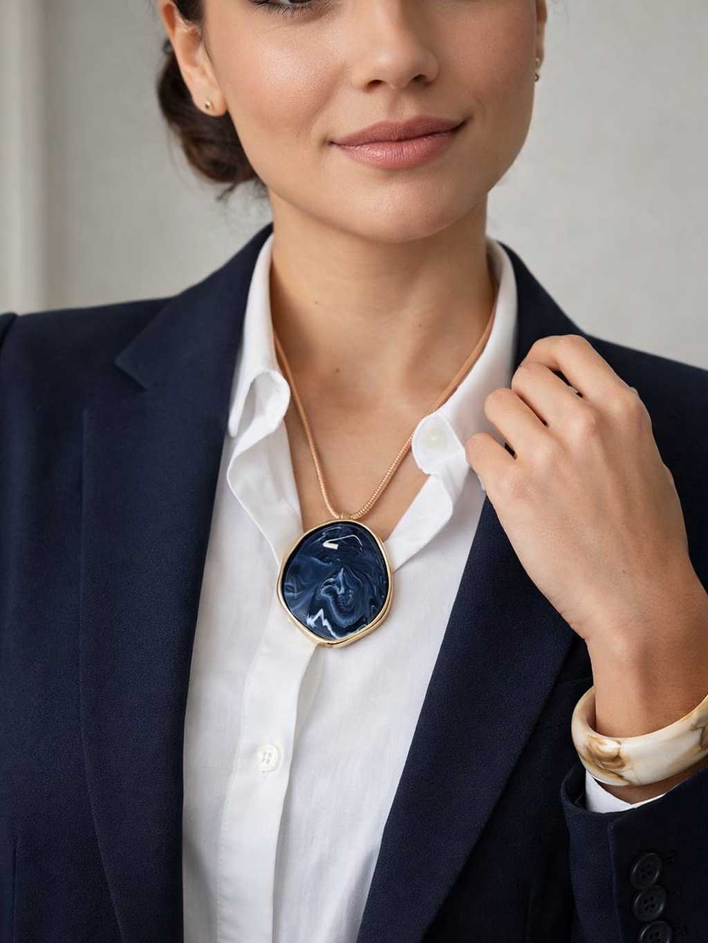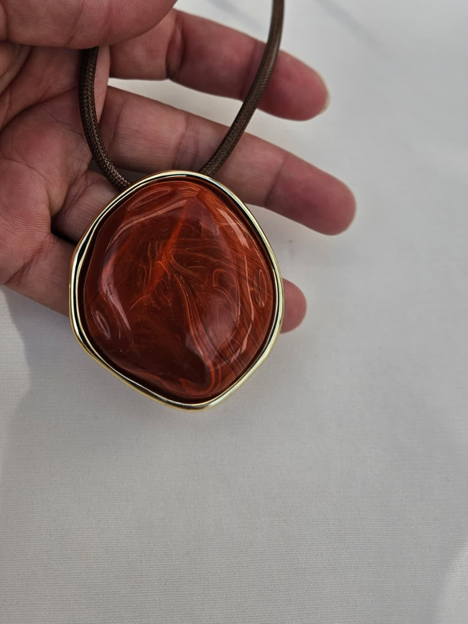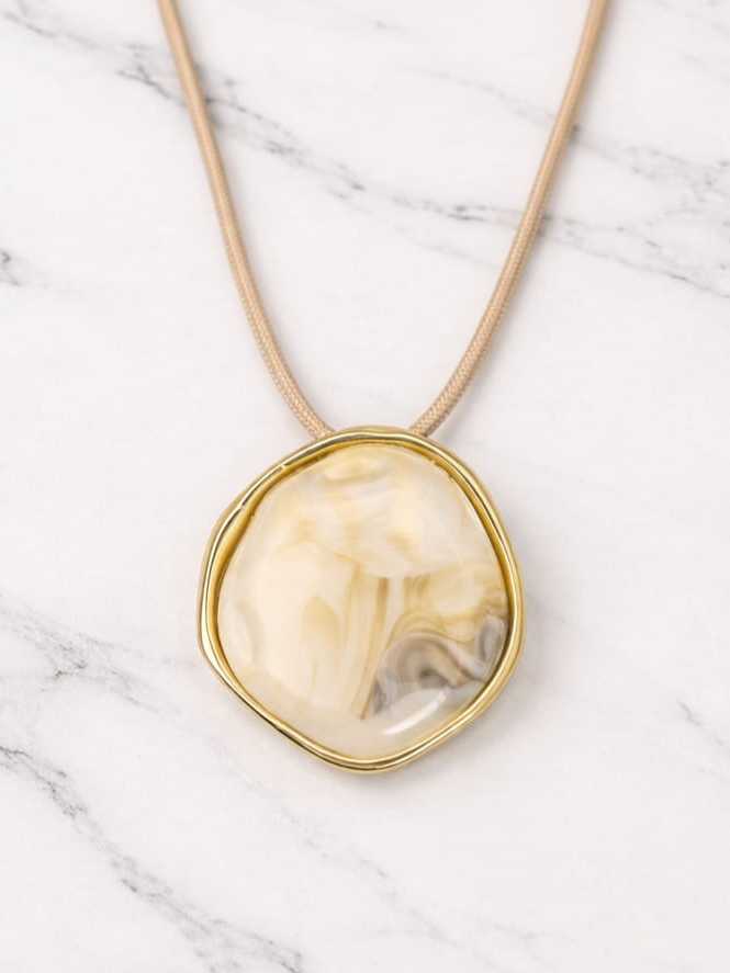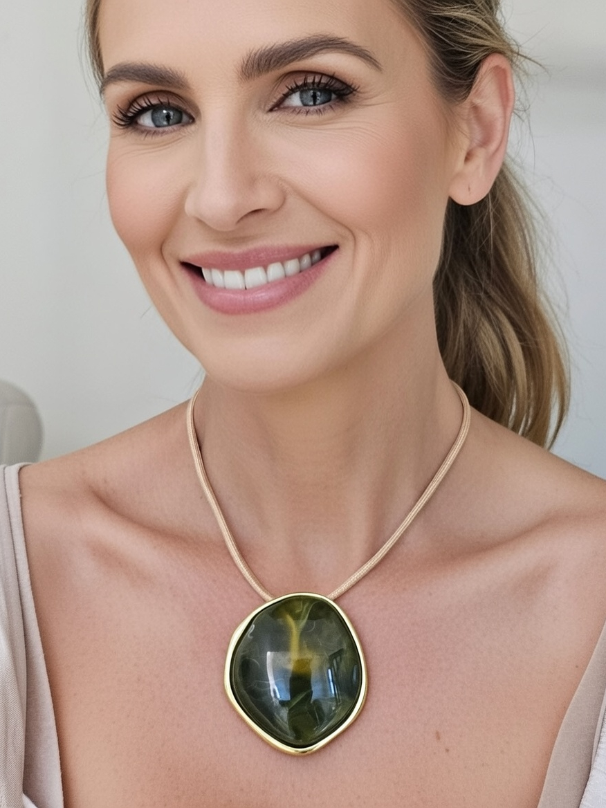 Colar Feminino com um Fio Encerado com Pingente Oval em Resina Azul Estilo Boho Artesanal