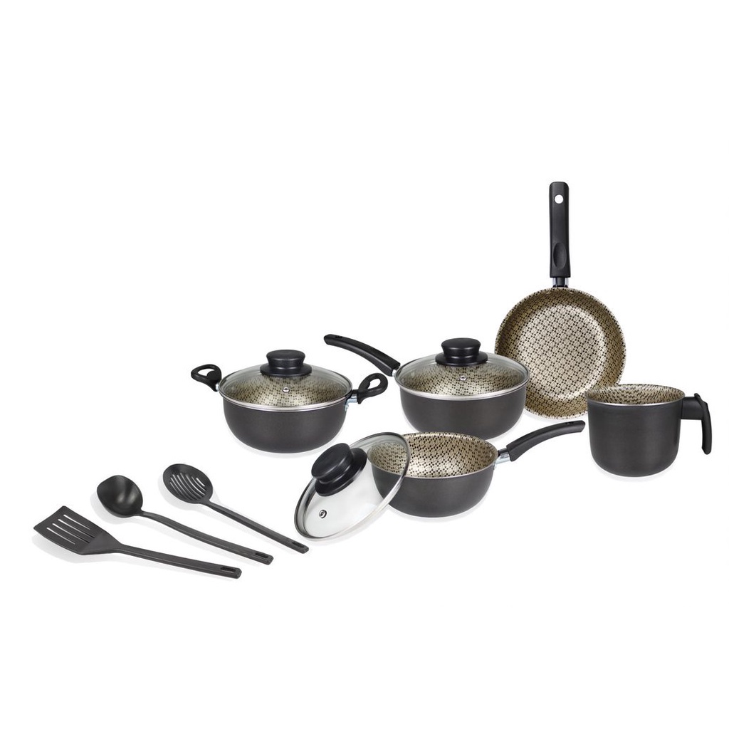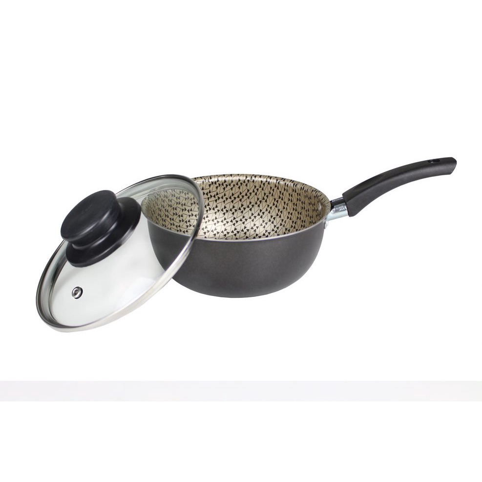 Conjunto De Panelas 8 Peças Antiaderente Creme Decorado Com Tampa De Vidro