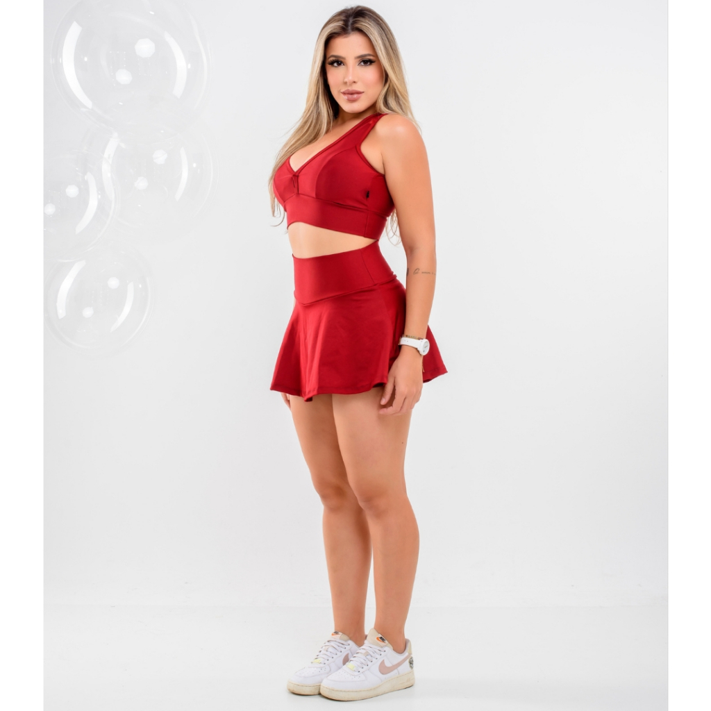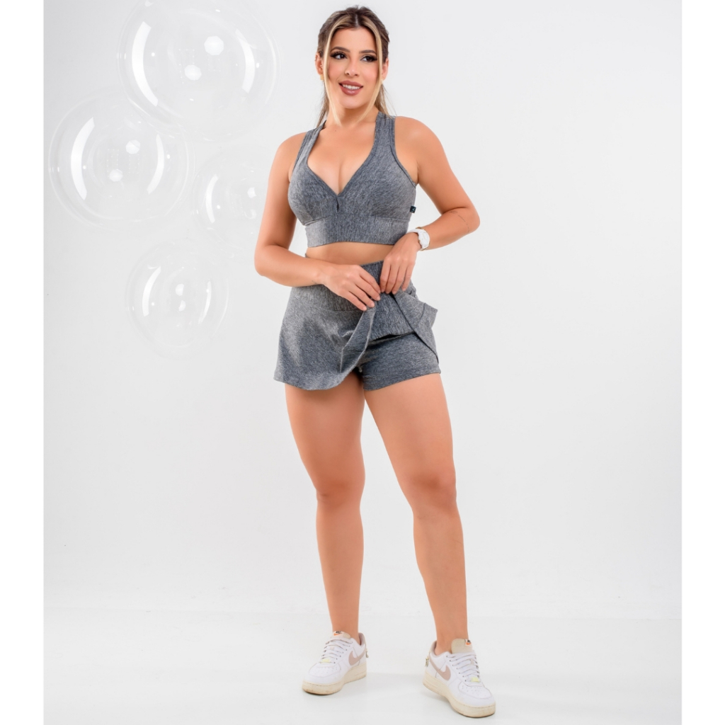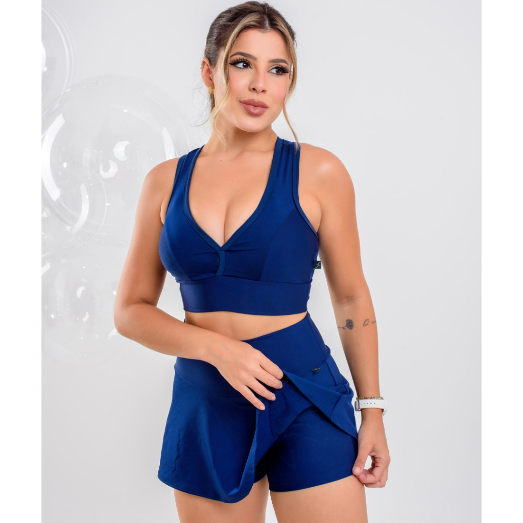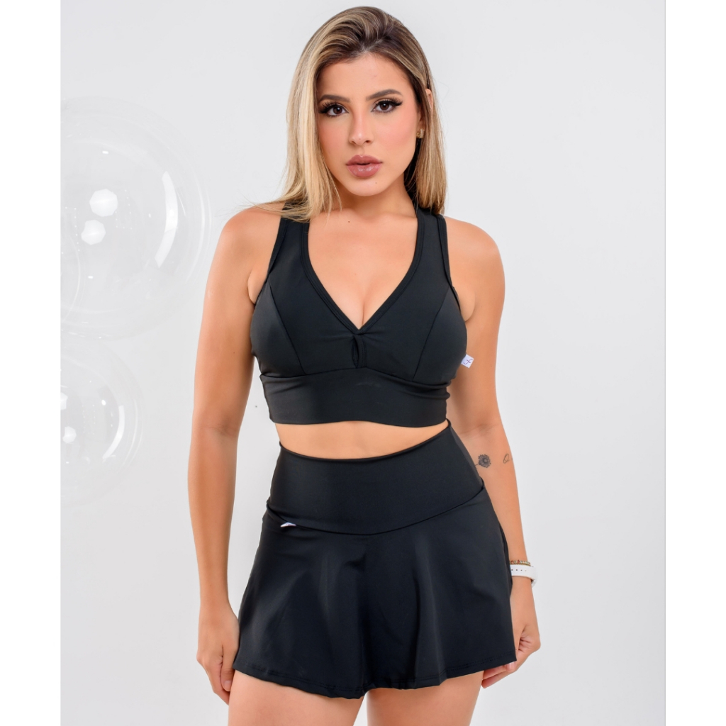 Kit Short-saia + Top Com Bojo Fitness Academia Treino