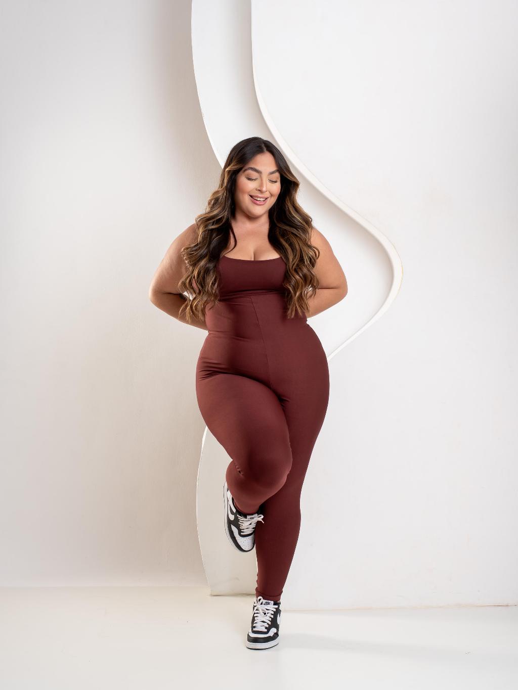 PLUS SIZE Macacões Longos Zero Transparência Fitness Premium Legg Feminino Academia Treino Bojo Removível Conjunto