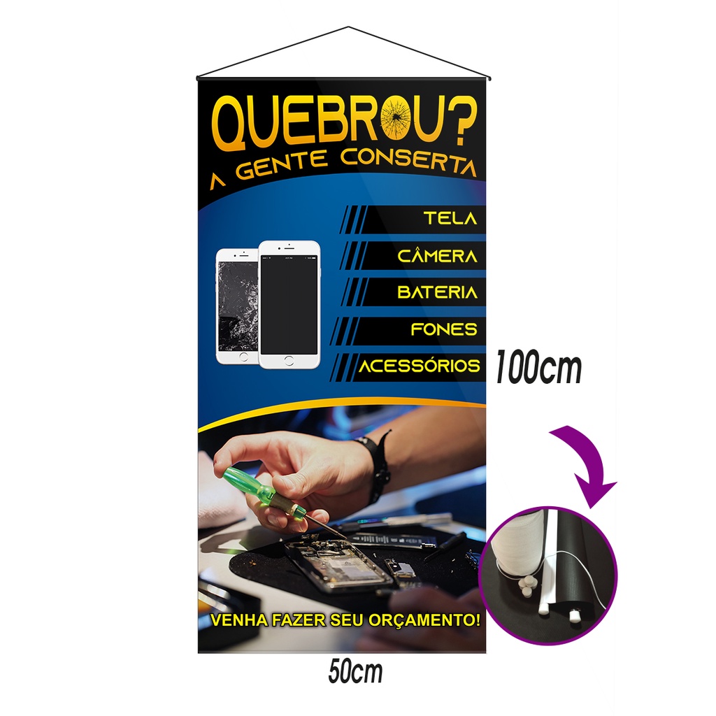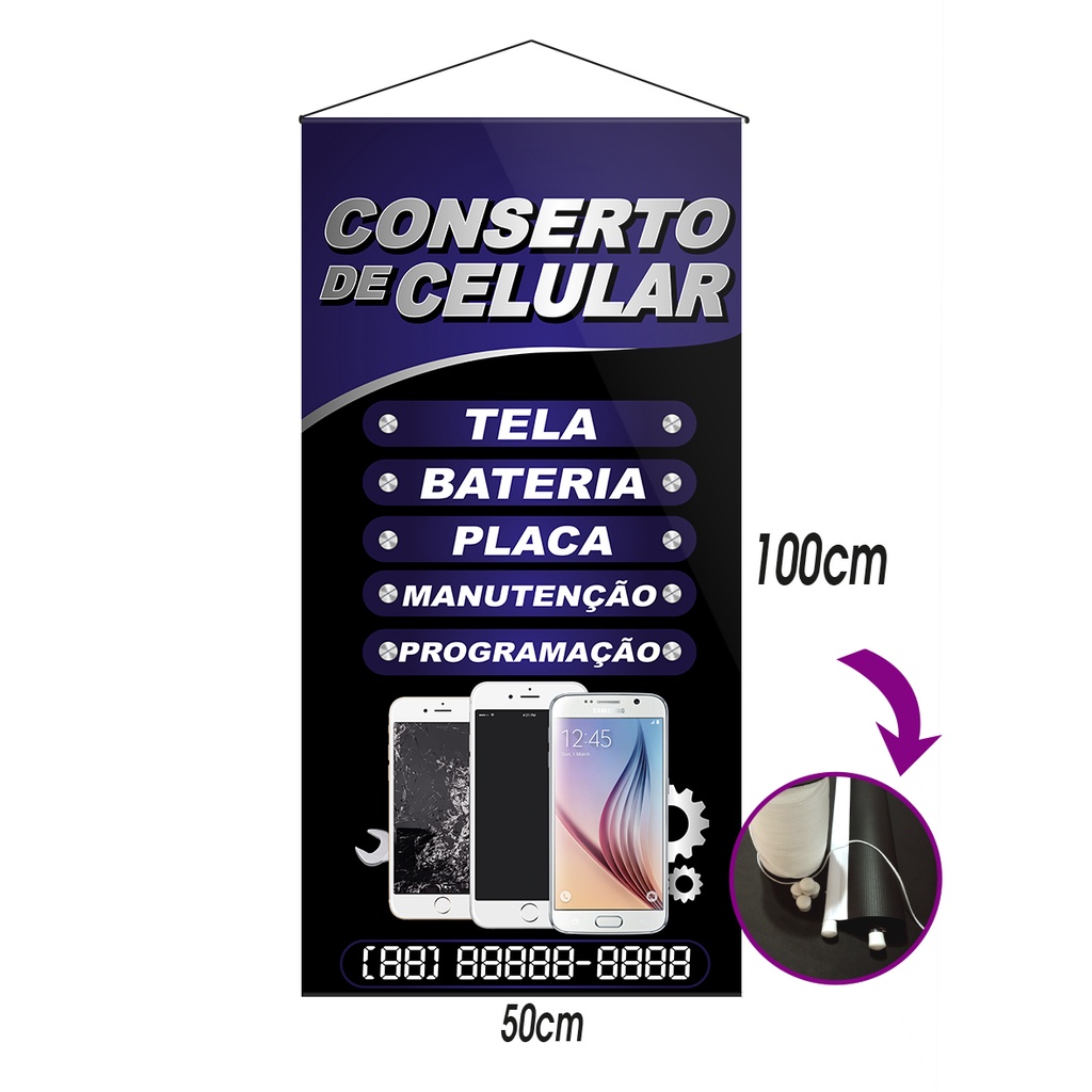 banner loja conserto de celular 50x100 ARTE PRONTA
