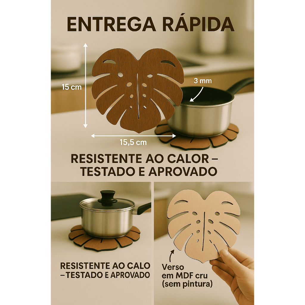 kit 4 Suporte de Panela ou Copo quente Proteção Pratos Jarras Suco Café Decoração Casa Cozinha Mesa Descanso Apoio
