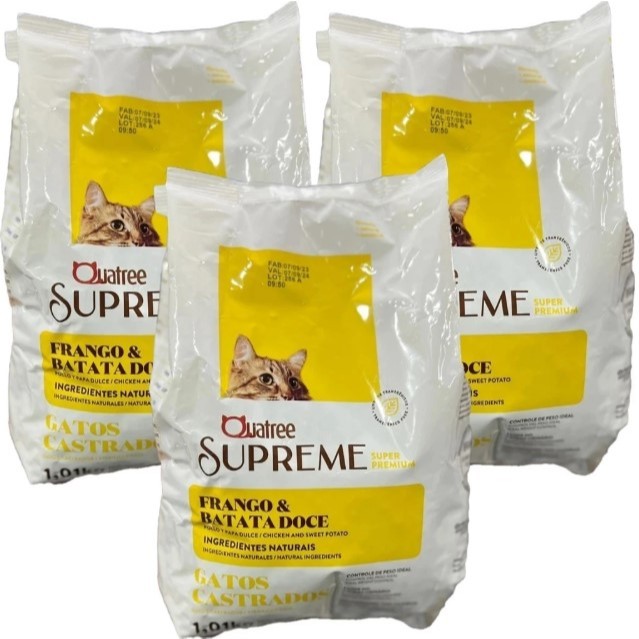KIT - 3 Pacotes Ração Quatree Supreme Gatos Castrados Sabor Frango e Batata Doce - 1 kg
