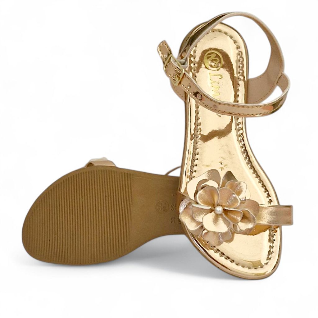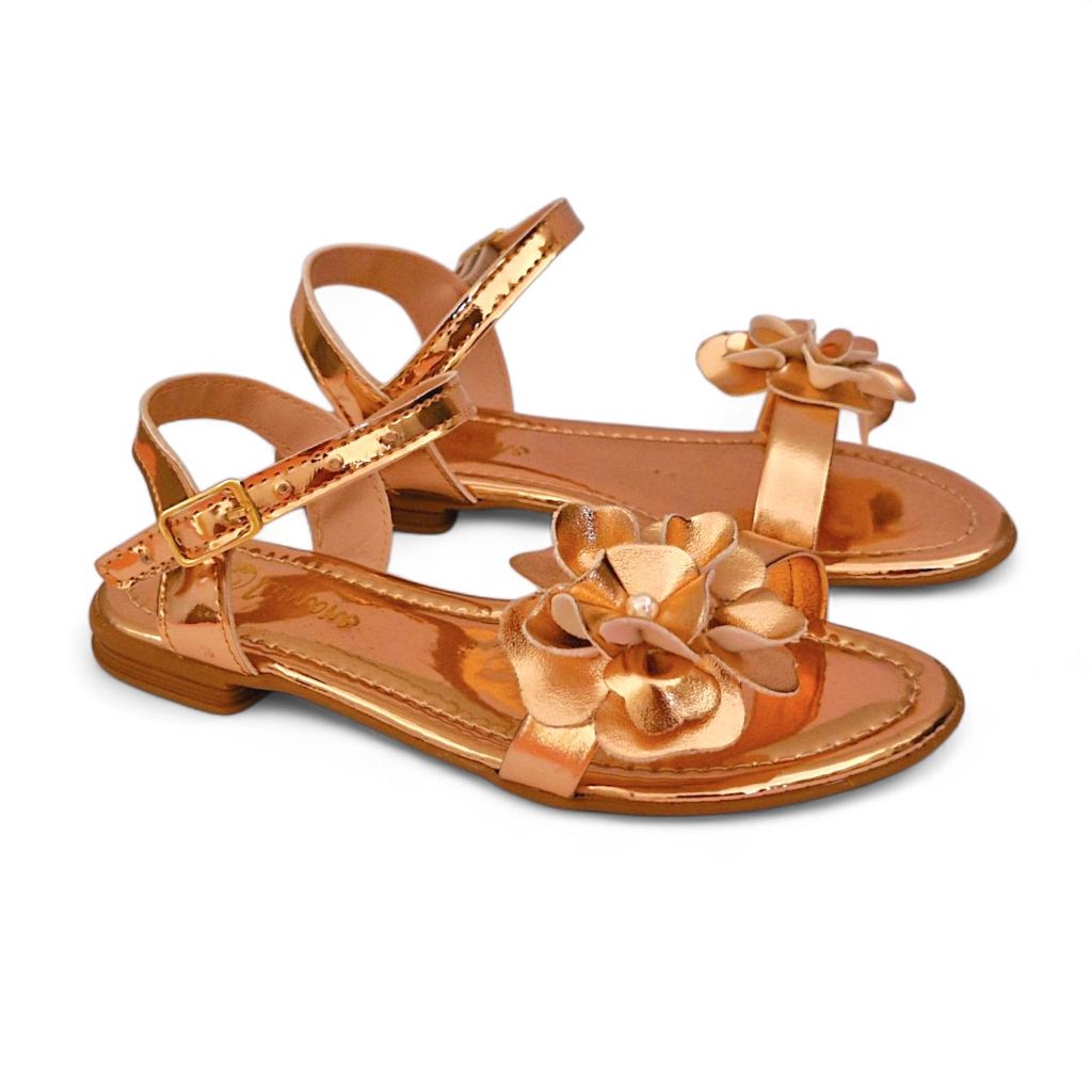 Sandália Rasteira Flat Feminina Infantil meninas Traseiro Fivela toda Delicada com Flor Elegante