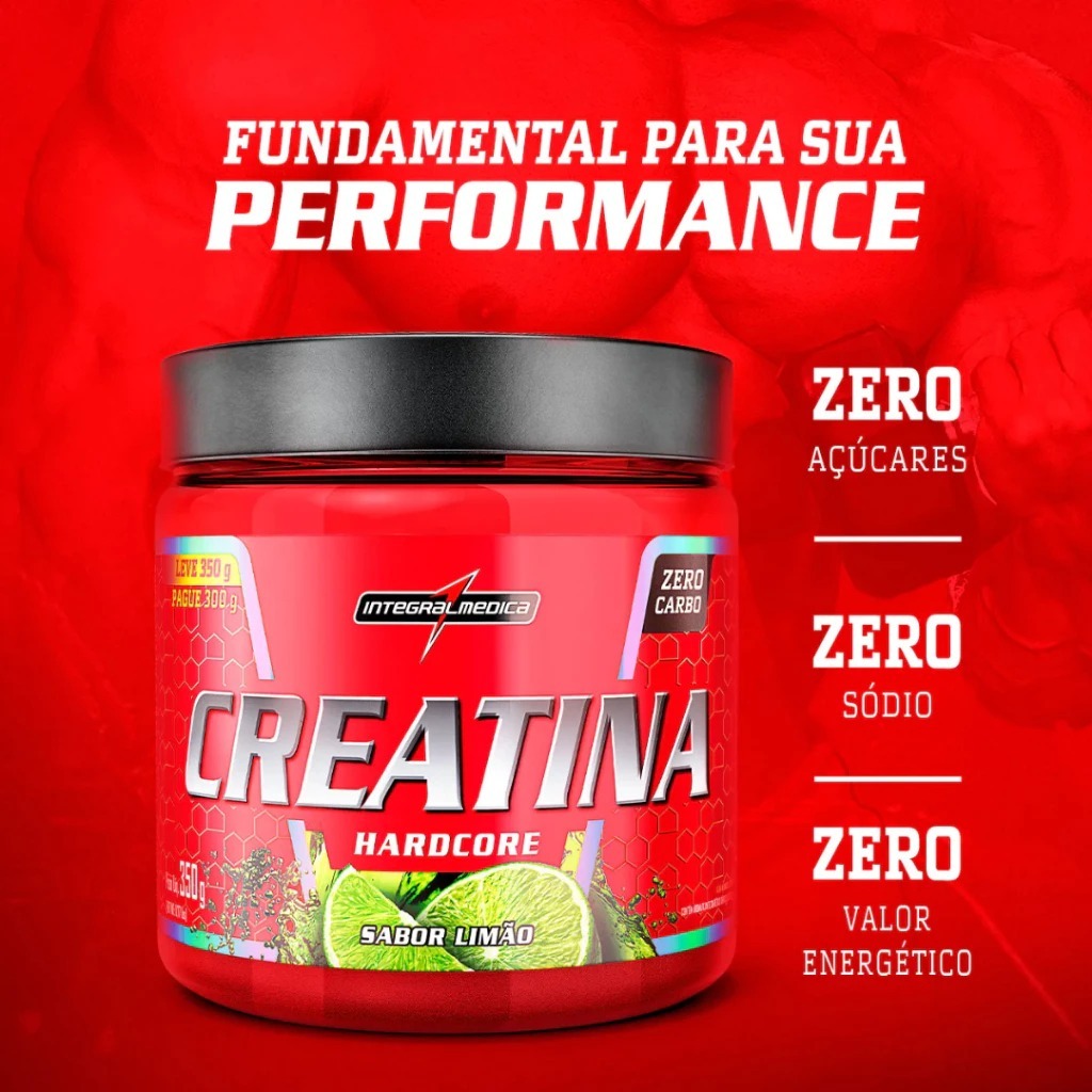 Creatina Hardcore 350g Integralmédica c/ Sabor e SEM Carboidratos