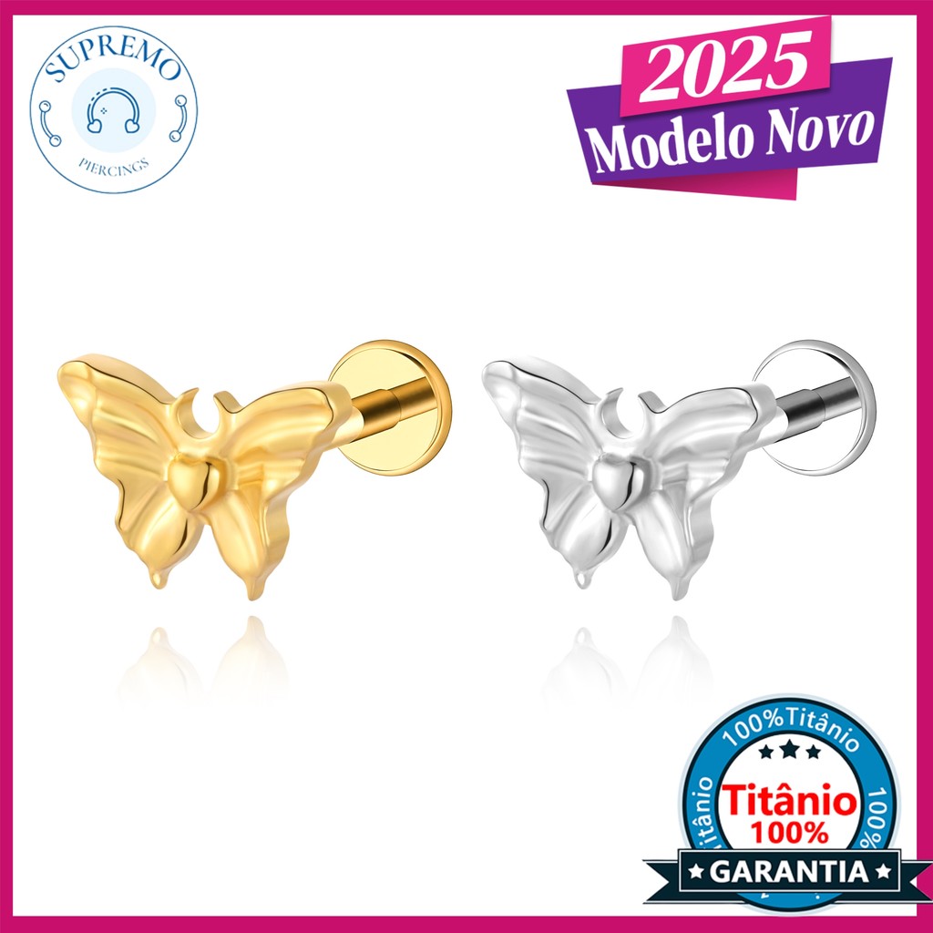 Piercing Helix Tragus Conch Labret Borboleta Titânio Detalhes