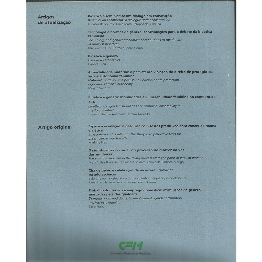 Livro: Revista Bioética Volume 16 Bioética e feminismo.