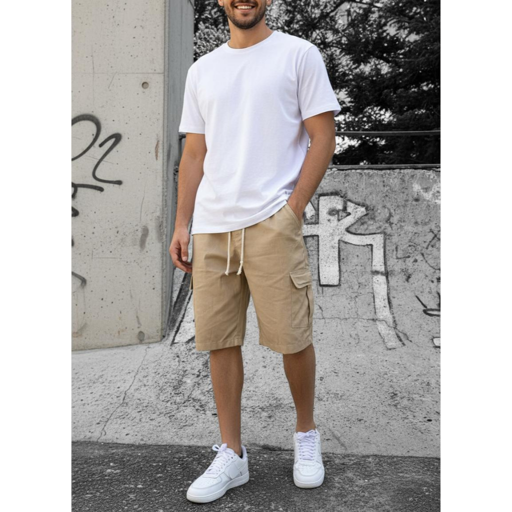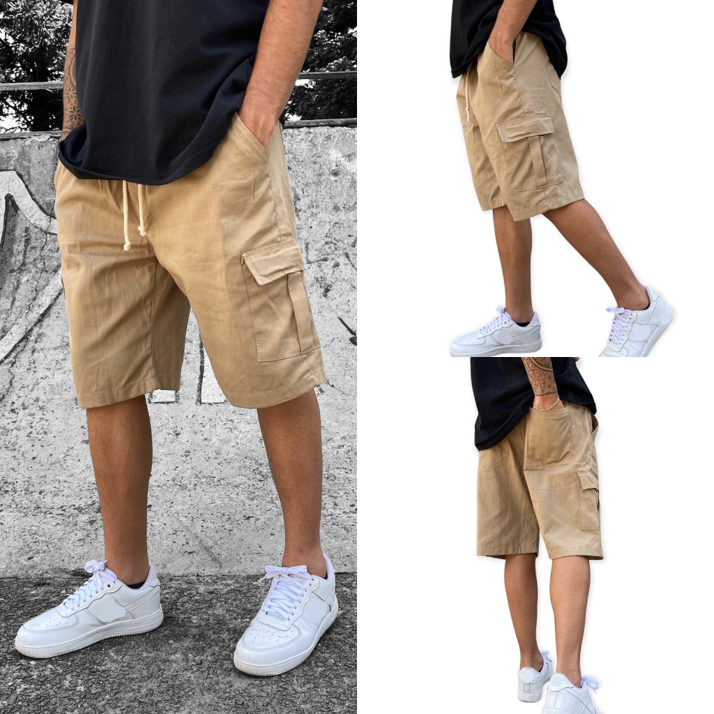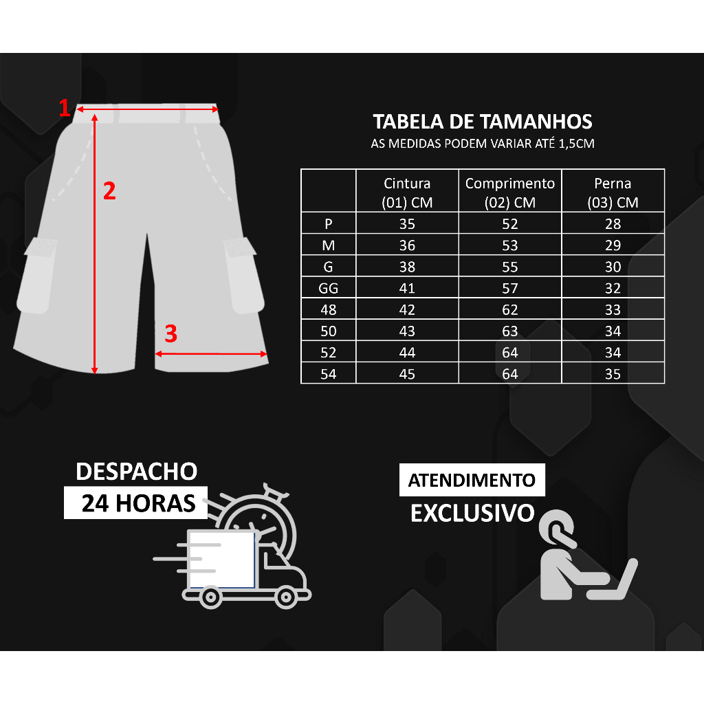 Bermuda Cargo Larga Short Masculino Skate Plus Size 6 Bolsos Preta Elástico
