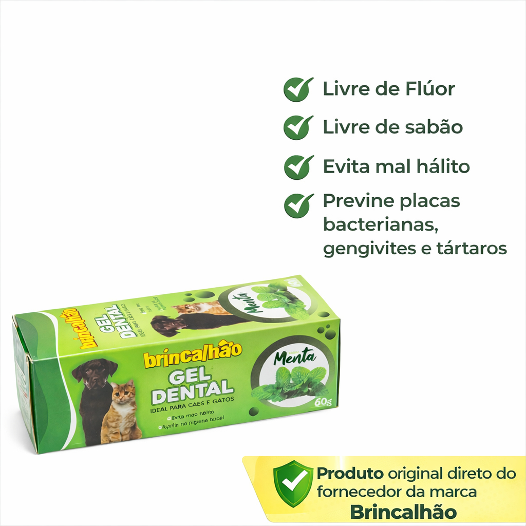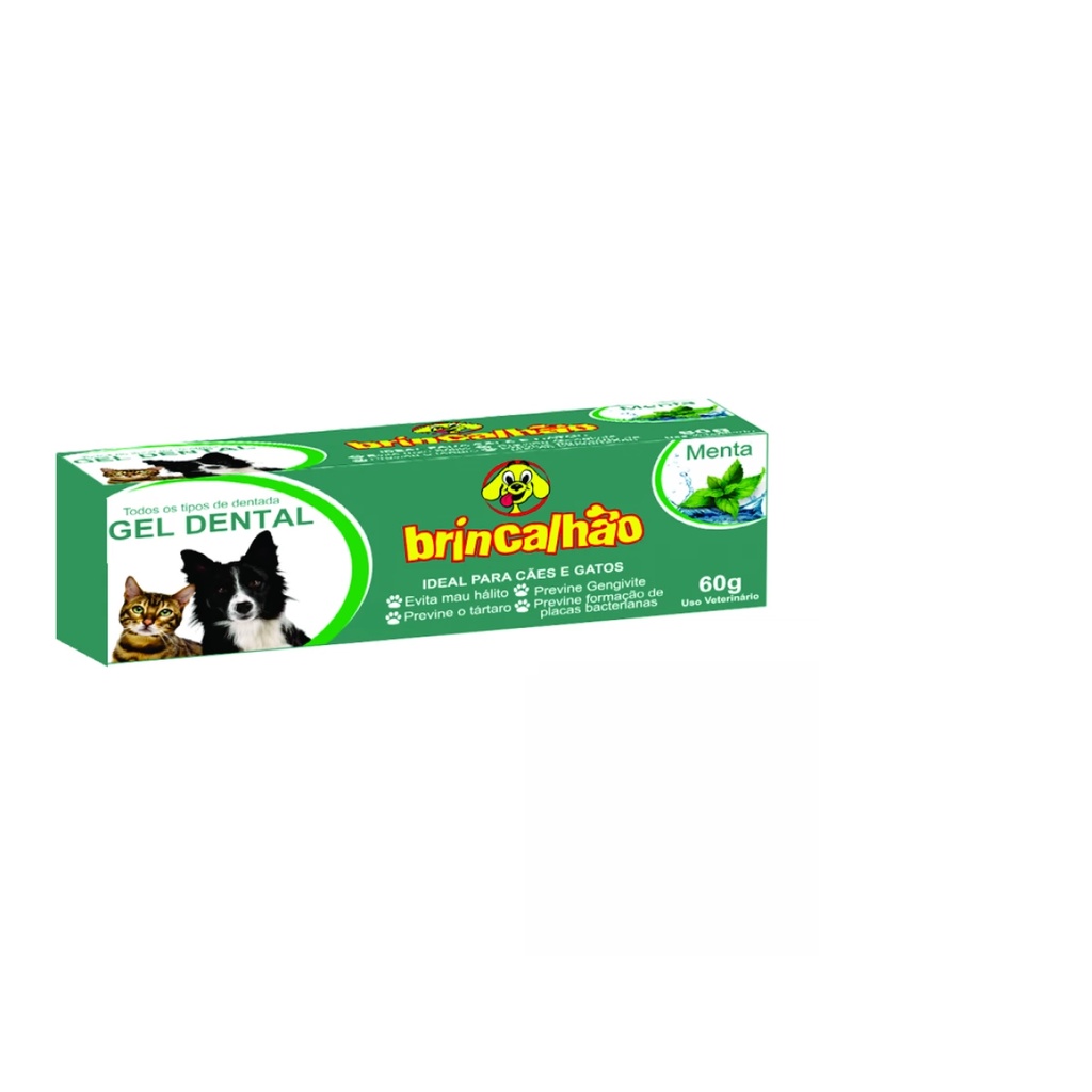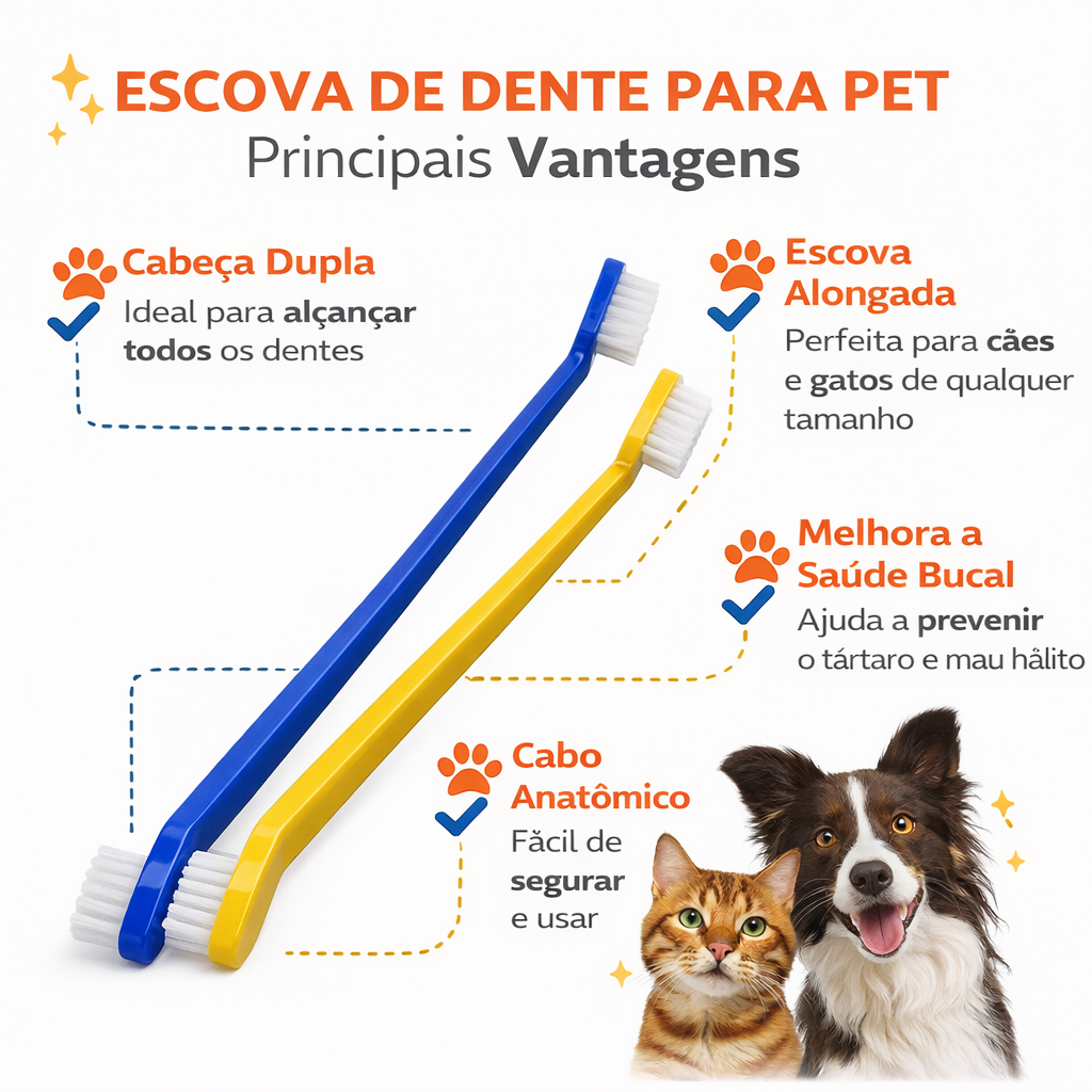 Kit 2 Escova de Dente + 1 Pasta de Dente Para Cães e Gatos Brincalhão