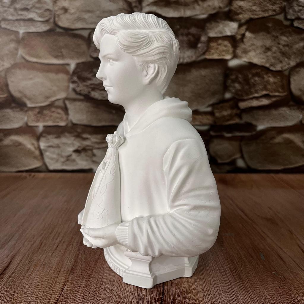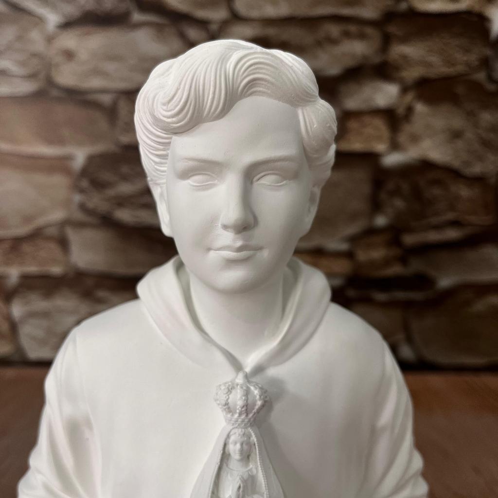 Imagem Busto Carlo Acutis com Nossa Senhora Aparecida em Gesso Cru