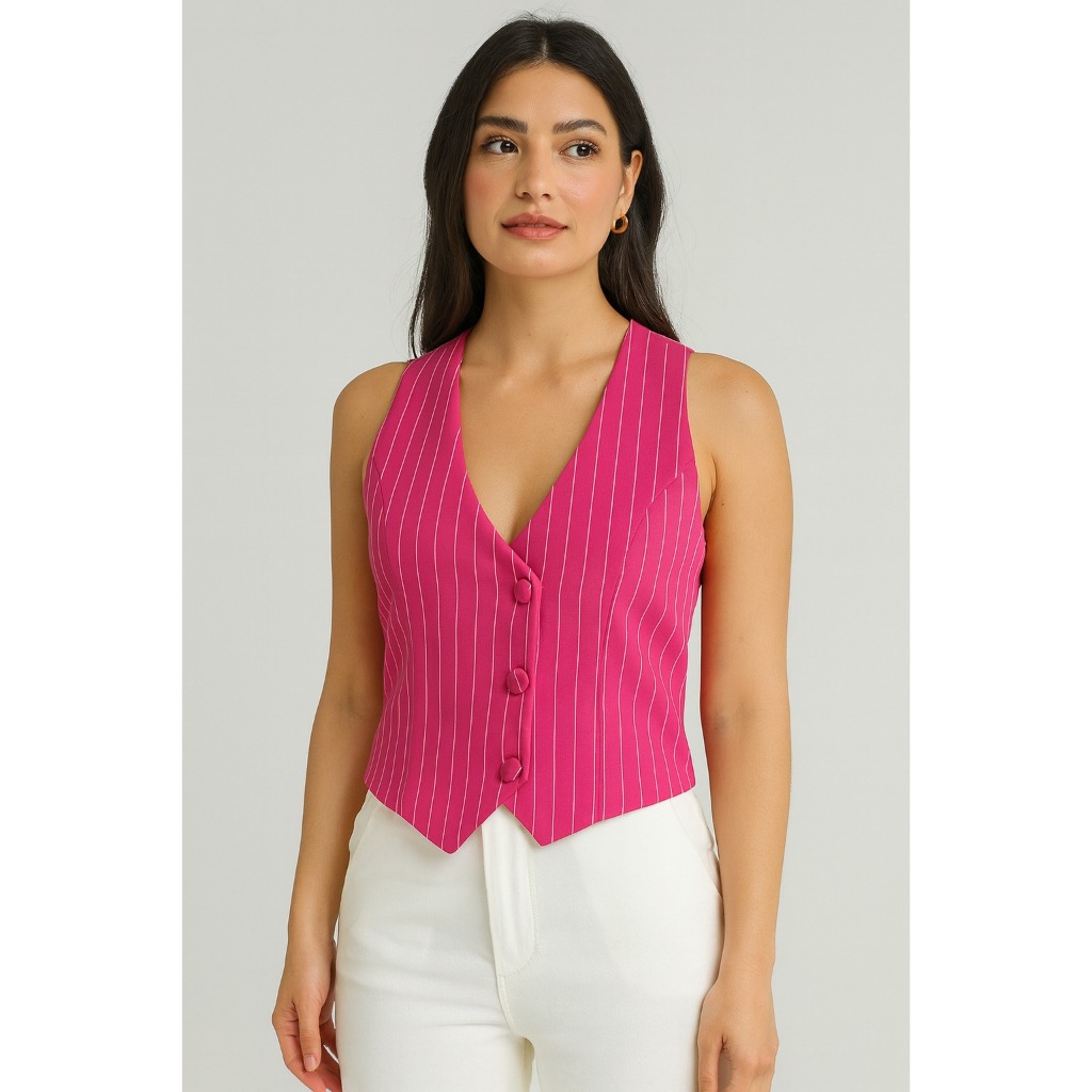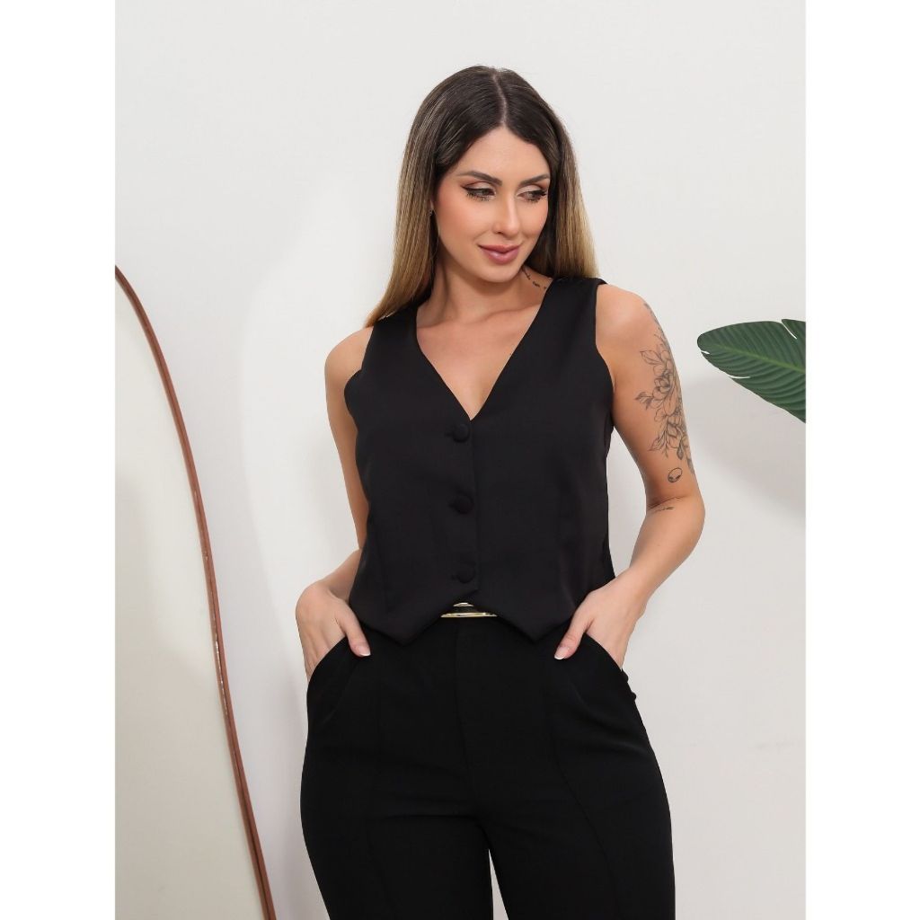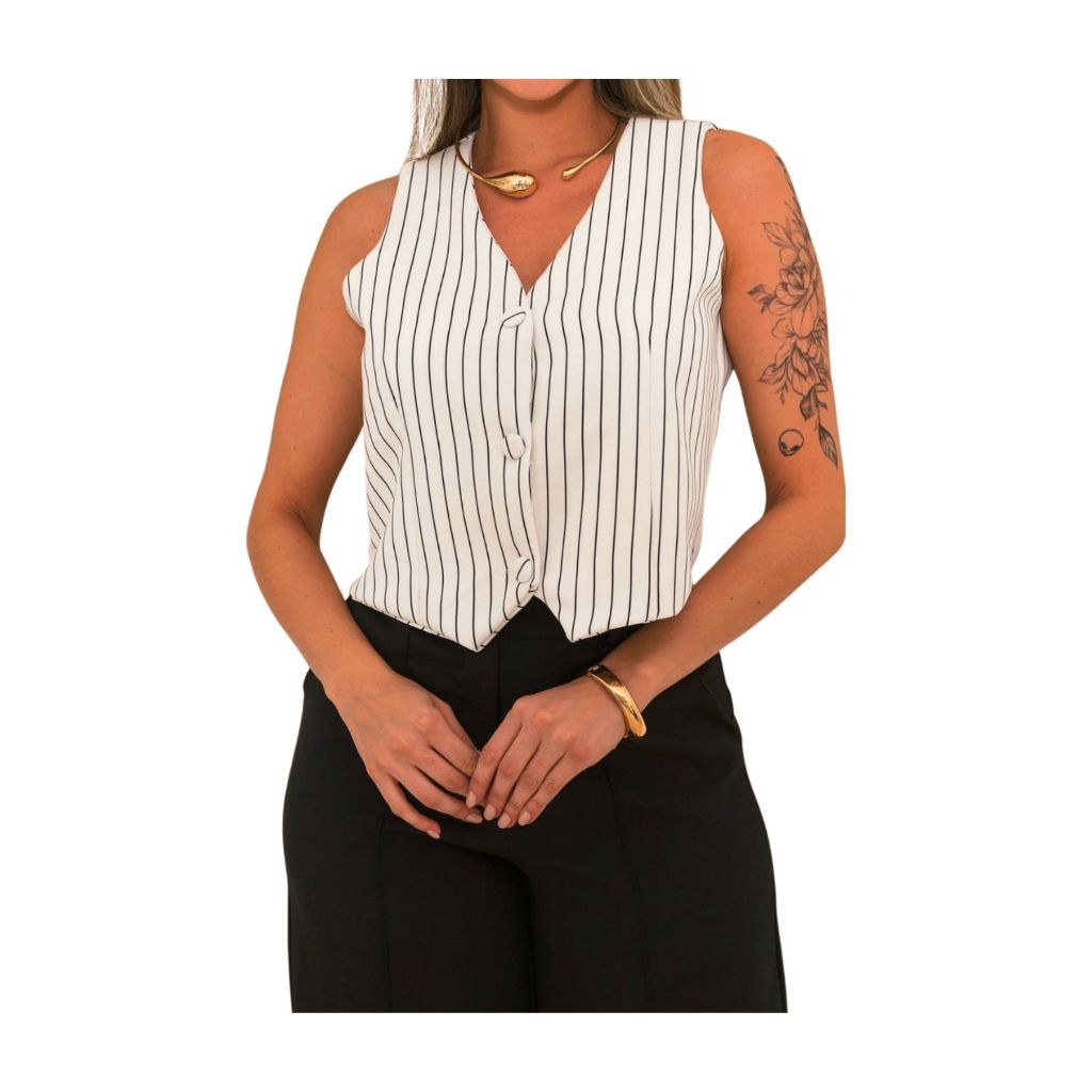 Coletinho Social Curto Listrado Social Decote V Com Botão Oferta Hoje Promoção Novidade