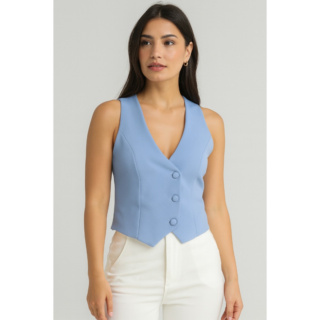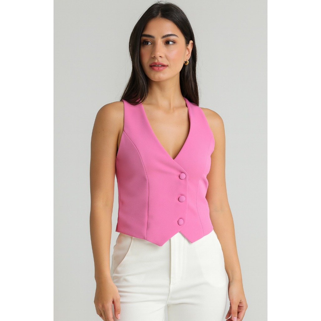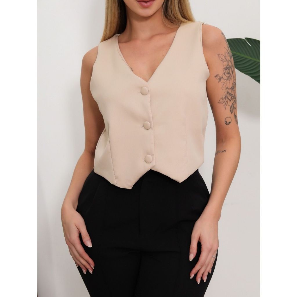Coletinho Social Curto Listrado Social Decote V Com Botão Oferta Hoje Promoção Novidade