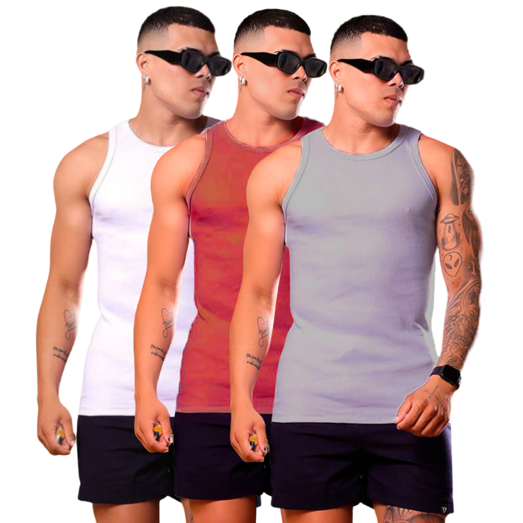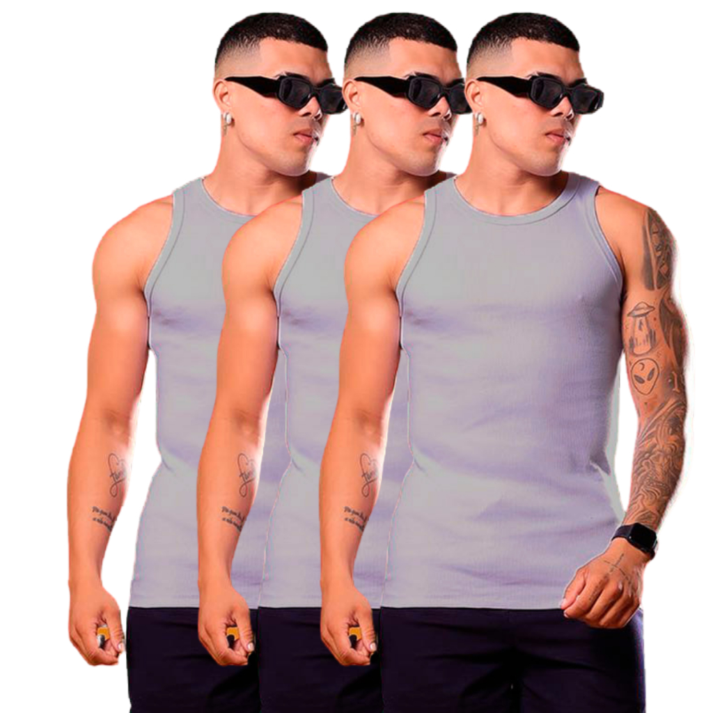 Kit com 3 regata Masculina Canelada estilo Americana Fitness Treino Esportiva Academia Verão Praia