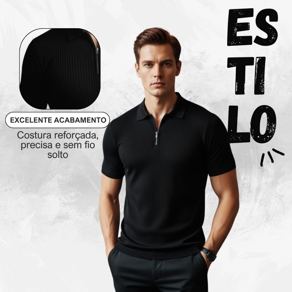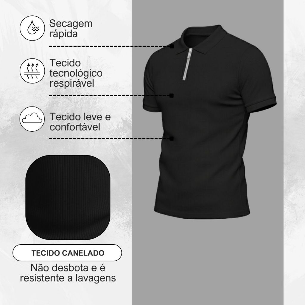 Kit 2 Camiseta Camisas Polo Manga Curta Com Ziper Masculina Malha Canelada