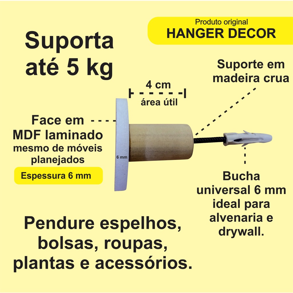 4 Ganchos Penduradores de Parede MDF Bola 4 Tamanhos