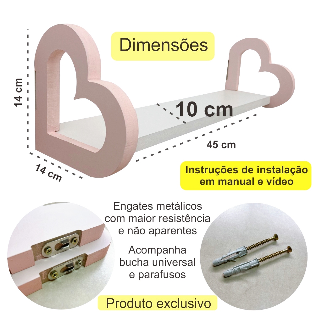 2 Prateleiras coração colorida quarto decoração infantil 45