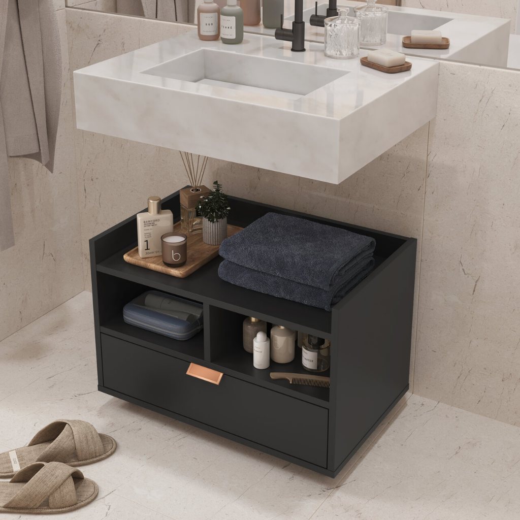 Gabinete Armário Banheiro Organizador C/ Rodízios Cobreado