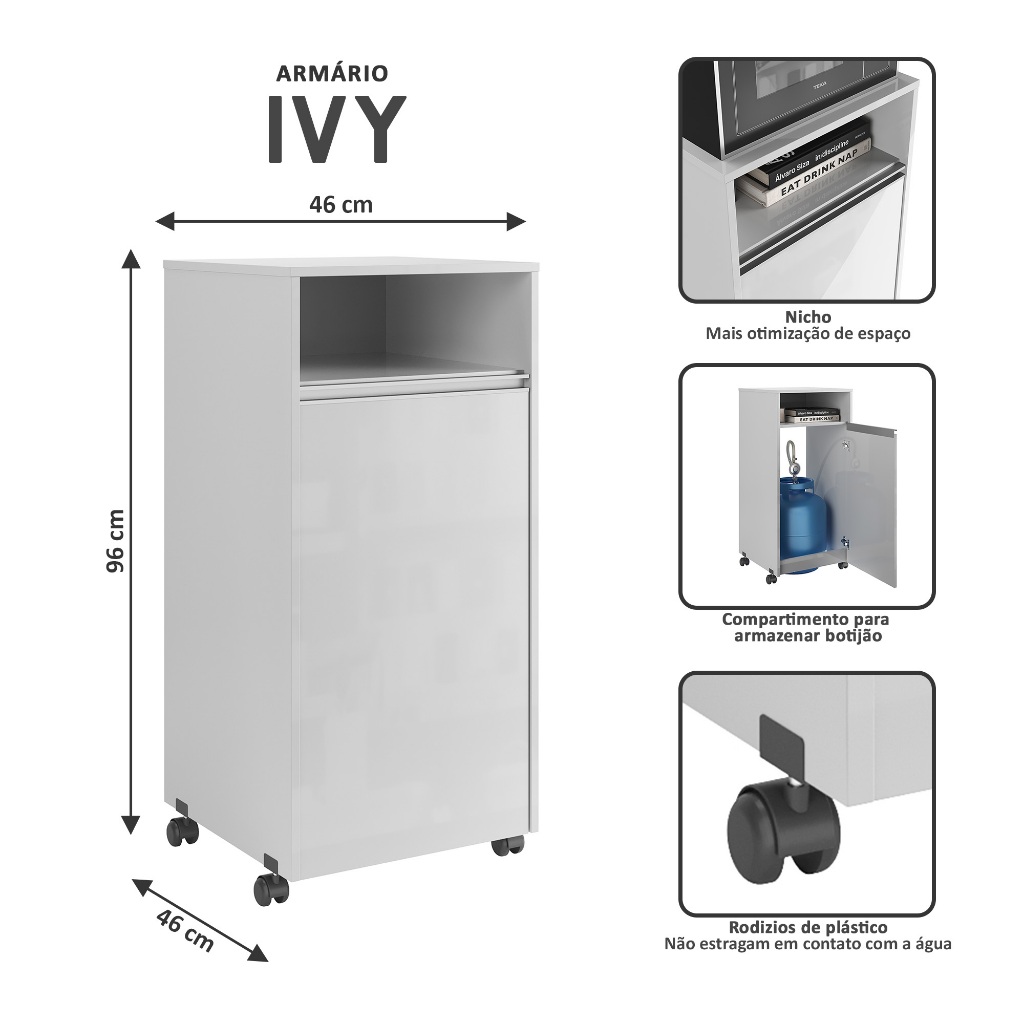 Armário Aparador Organizador Com Porta Rodizio Para Cozinha