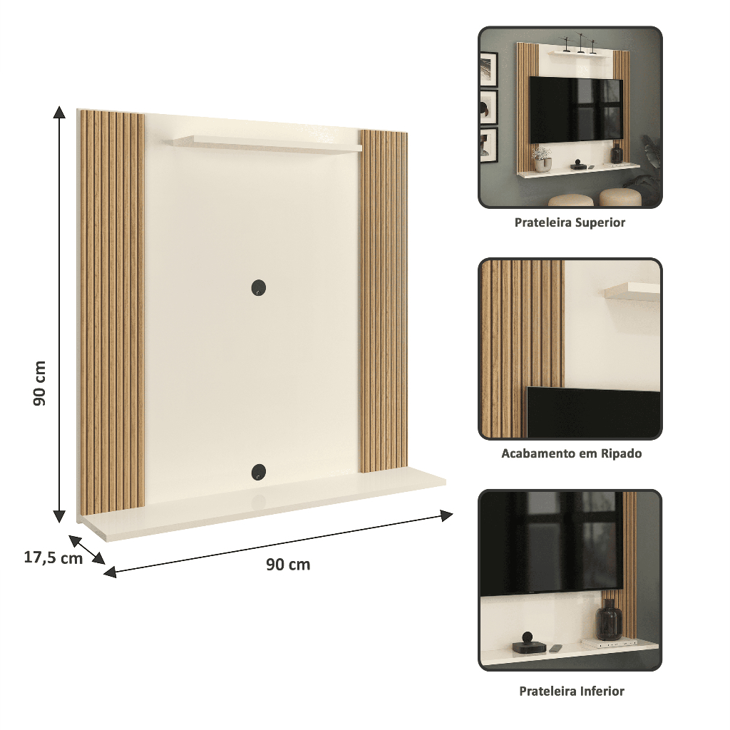 Painel Suporte Para TV Sala Quarto Ripado C/ Prateleira Suspenso Até 32 Polegadas VENEZA